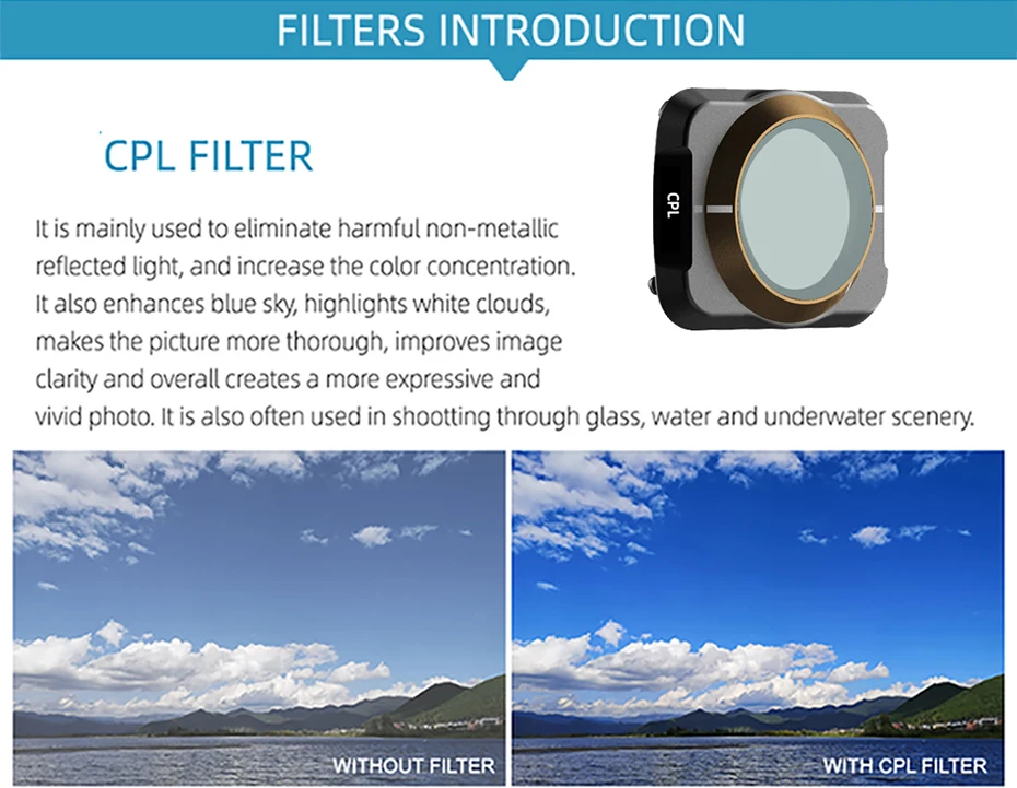 Благодаря ограничениям традиционных фильтров ND-PL фильтр сочетает в себе преимущества ND и CPL для удовлетворения ваших потребностей в продлении времени экспозиции и устранении нежелательного поляризованного светильник, что делает себя мощным инструментом для ландшафтной фотографии.
