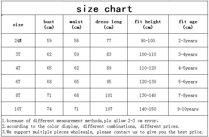 Доступно 6 размеров: Размер 24 м подходит для роста 90-100 см; Размер 3Т подходит для роста 100-110 см; Размер 4т подходит для роста 110-120 см; размер 6т подходит для роста 120-130 см; Размер 8Т подходит для роста 130-140 см; Размер 10Т подходит для роста 140-150 см; Пожалуйста, выберите правильный размер для своего роста. Если ваша принцесса весит больше вашего обычного тела, выберите больший размер.