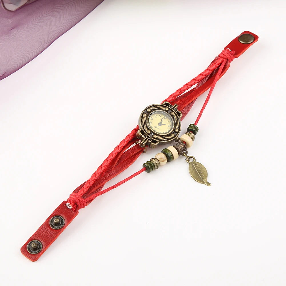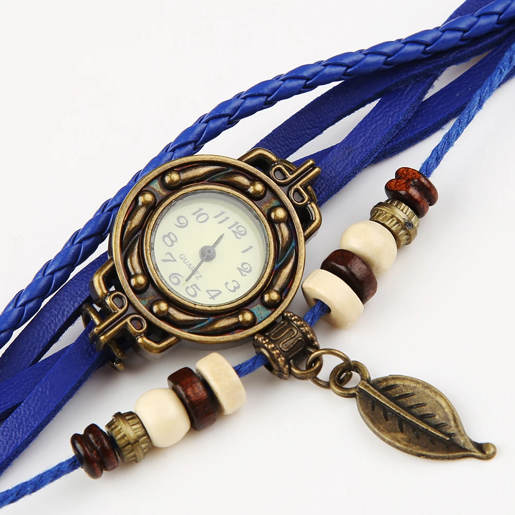 Ретро браслет кварцевые часы женские кожаный браслет Дерево лист украшения Аналоговые кварцевые наручные часы женские часы montre femme