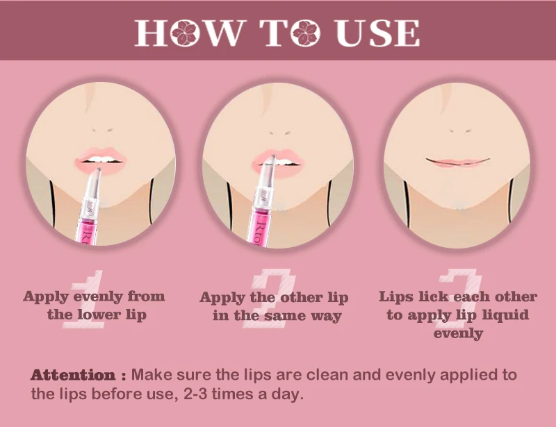 Убедитесь, что губы чисты и равномерно наносятся на губы перед использованием, 2-3 раза в день,
