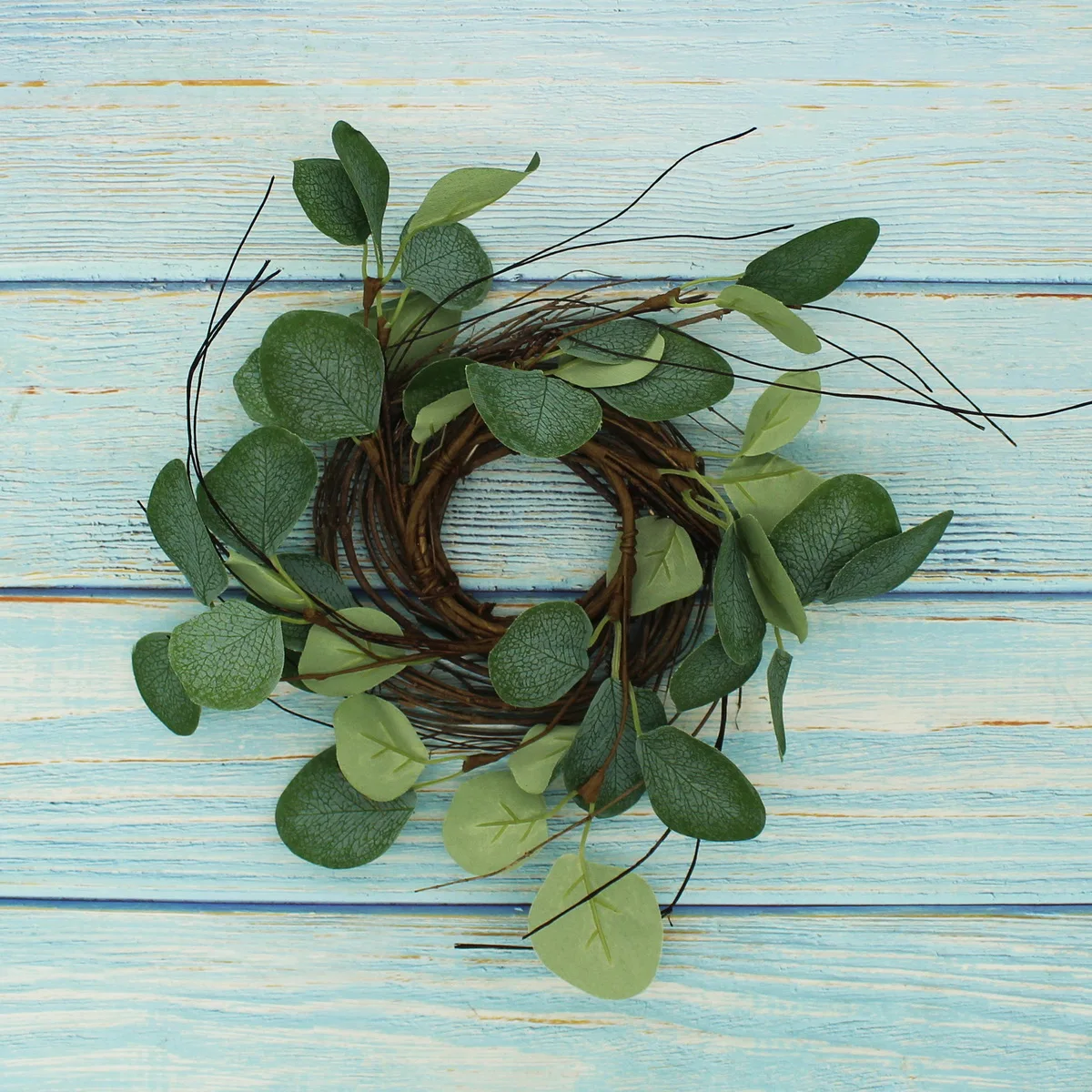 Cvhomedeco. Деревенский деревенский искусственный Эвкалиптовый венок с листьями и веточками, круглый год, полный зеленый венок для внутреннего или наружного дисплея, 9 дюймов