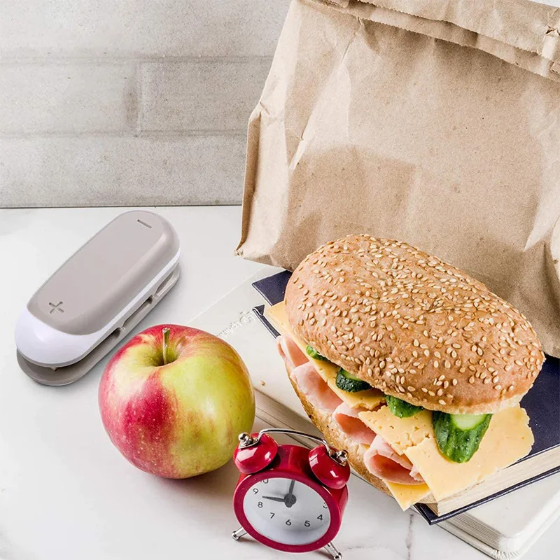 Простота в использовании: пожалуйста, откройте крышку, чтобы подогреть изделие, нажав 3-5 секунд перед использованием, а затем просто проведите его по краю сумки, и он герметичен герметично. Также вы можете переключить другой конец, чтобы открыть сумку