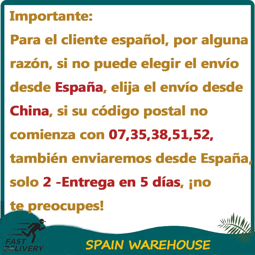 Если ваши первые два кода zipe являются 07,35,38,51,52 областью, мы не можем отправить посылка напрямую, если хотите, пожалуйста, выберите «Стандартная доставка AliExpress» для отправки из Китая. Спасибо.