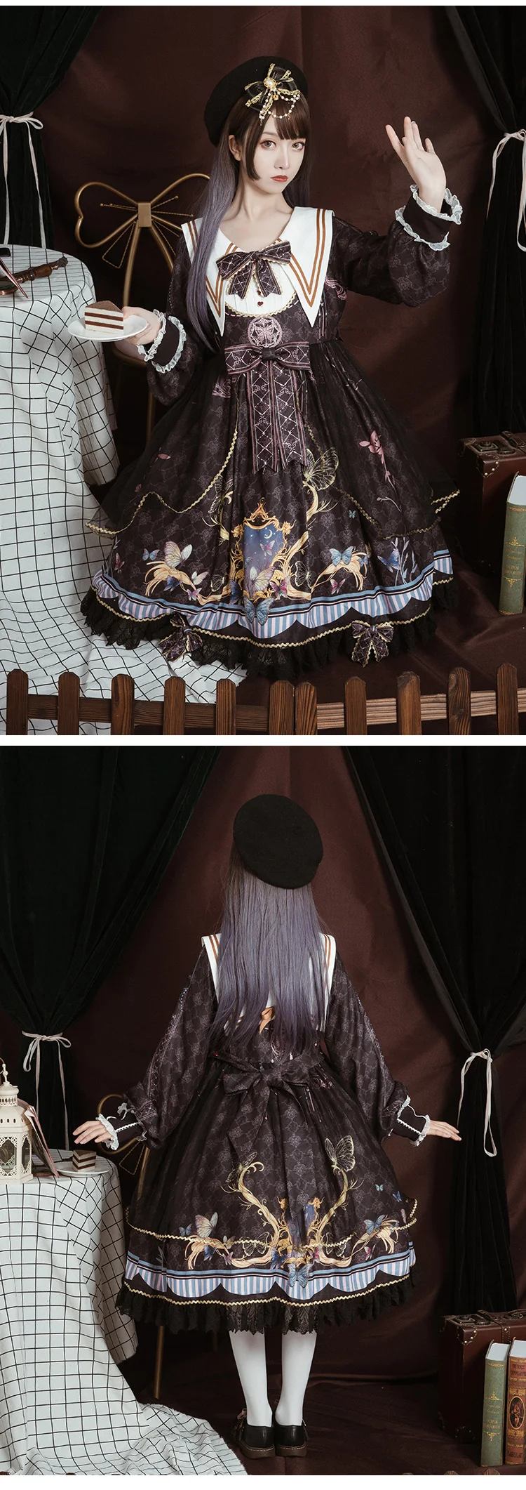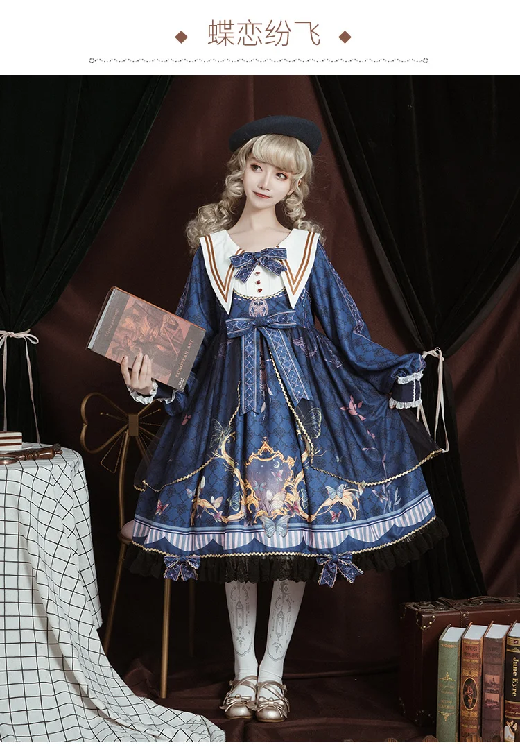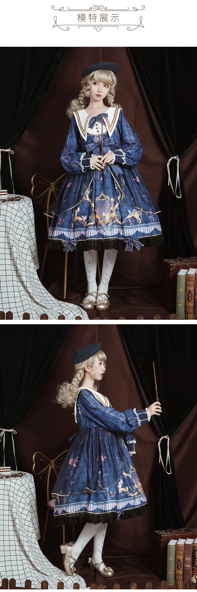 Дворцовое платье принцессы, милое платье лолиты, Ретро стиль, матросский воротник, falbala, высокая талия, платье в викторианском стиле, kawaii, Готическая Лолита, op loli cos
