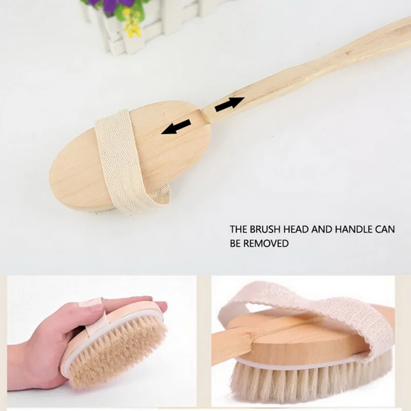 <Для сухого и влажного душа: щетка для душа используется в сухой или влажной чистке. Когда щетина высохнет, это хорошая кисть для подтяжки кожи. При использовании он становится мягким после мытья горячей водой и отлично подходит для очистки тела.