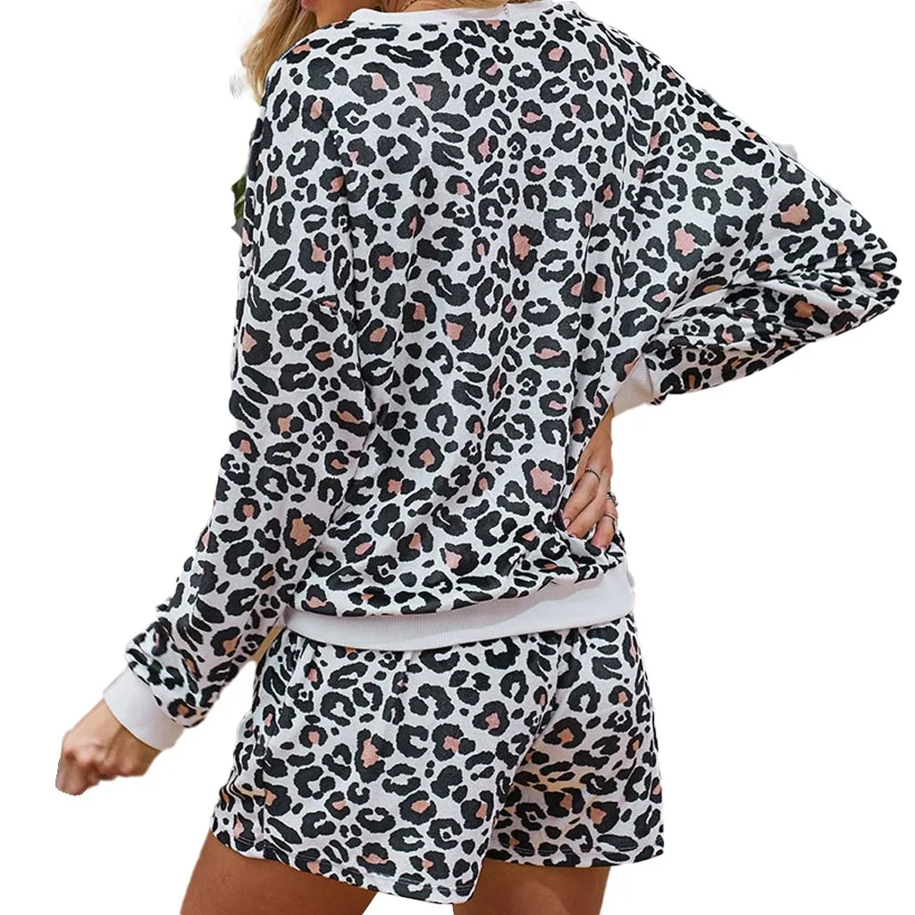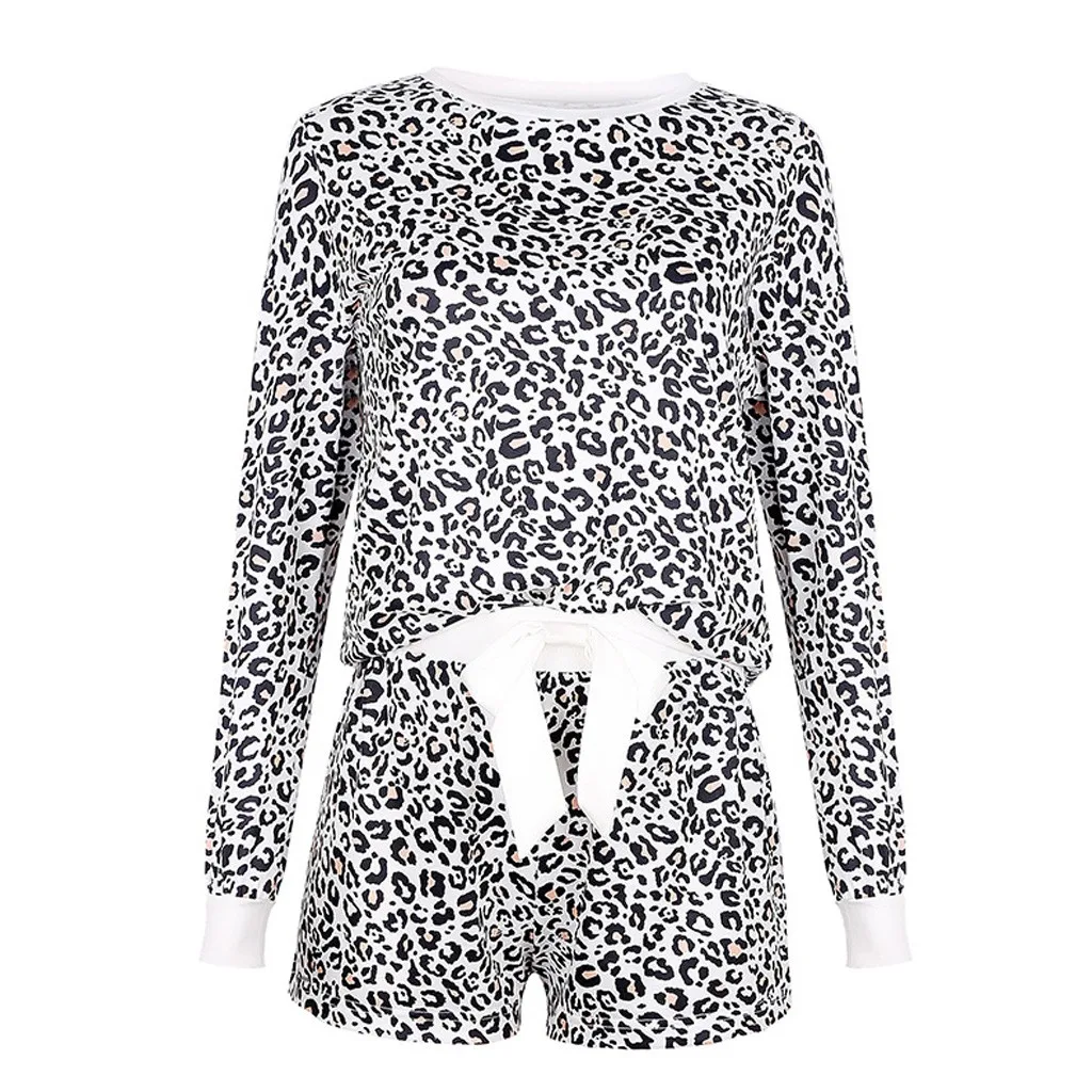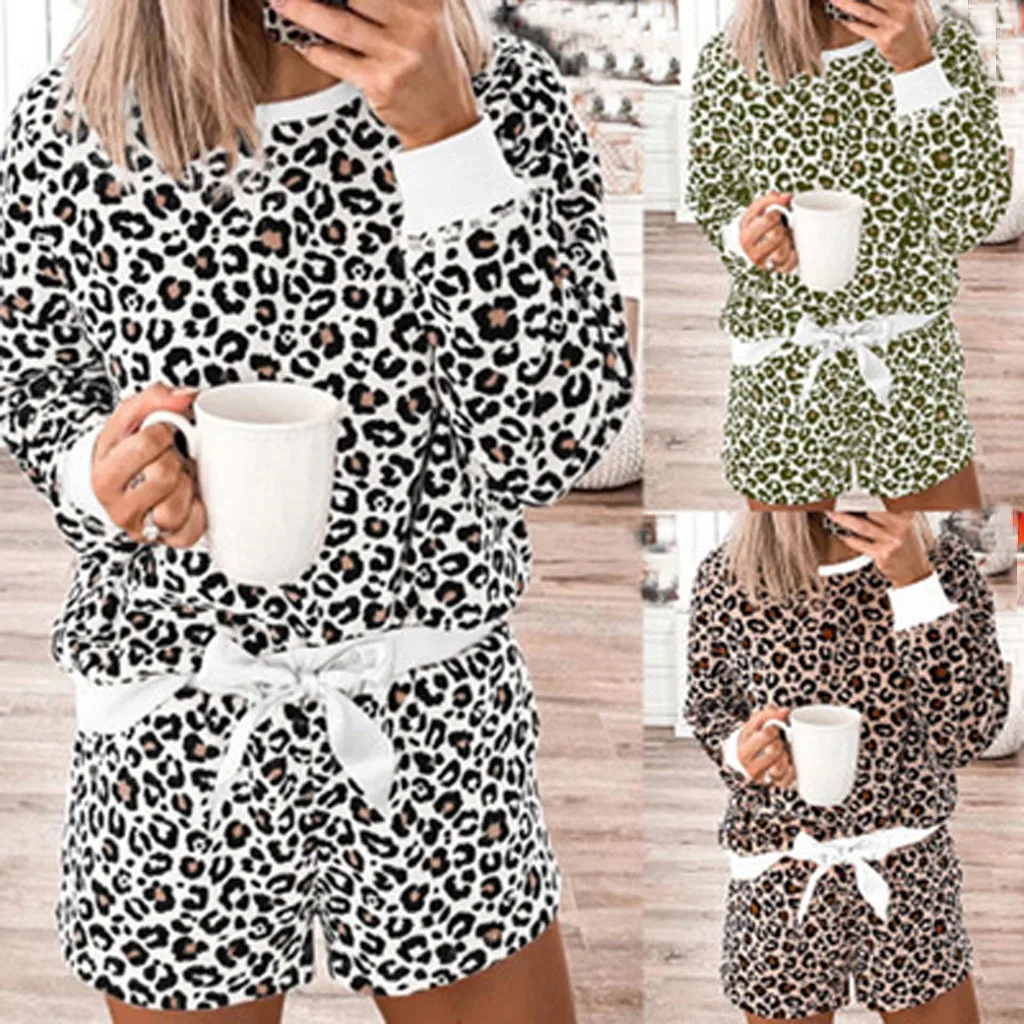 Женская леопардовая Пижама с коротким рукавом, ночная рубашка, длинная одежда для сна