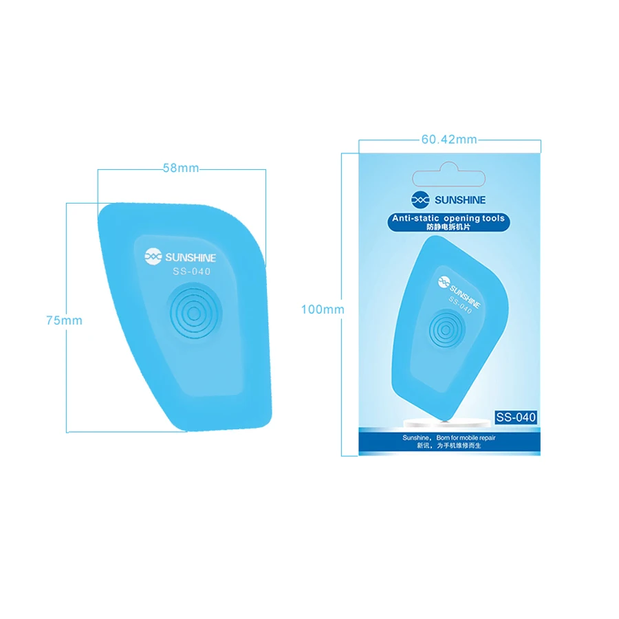 Спецификация: -- Название продукта: Антистатические инструменты для открытия -- Размер продукта: 58*75 мм Описание: -Сильная прочность. -- Отличный пользовательский опыт. -Приятно разбирать -Четырехугловая Изогнутая конструкция -- Удовлетворяет потребности в открывании телефона -- Сделать открытый мобильный телефон проще -Наиболее подходящий размер для удаления мобильный телефон.