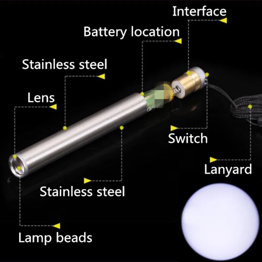 Это фонарик размера ручки, корпус из нержавеющей стали.