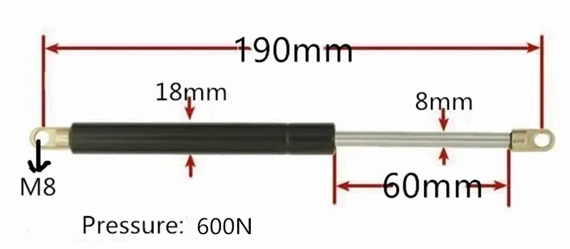 60 мм ход 600n сила авто пружина газа заслонка газовая стойка, пружинный амортизатор подъемный стержень Prop автомобильные M8 газовые пружины 190 мм