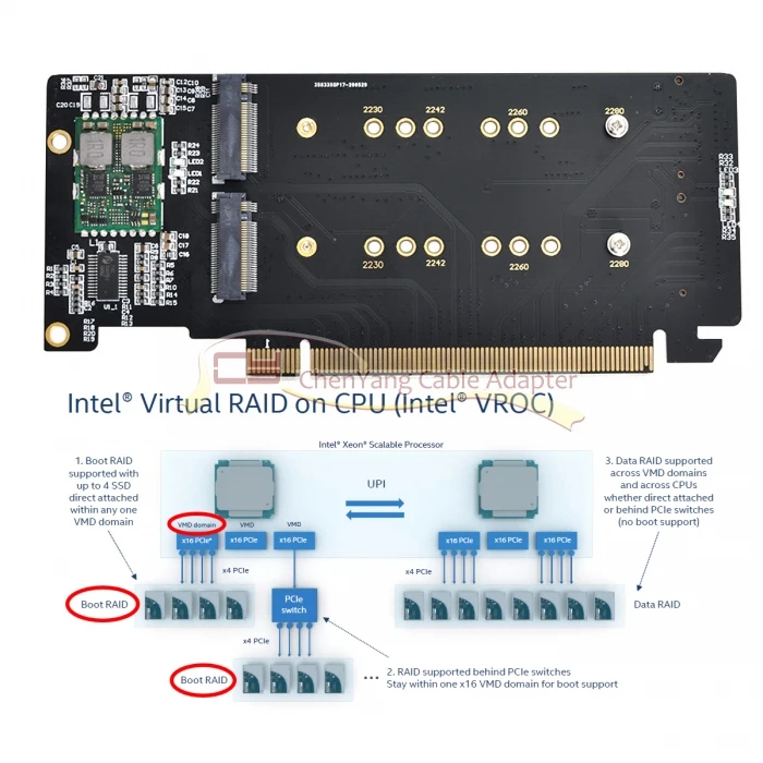4X NVME M.2 AHCI к PCIE Express 3,0 Gen3 X16 Raid Card VROC Raid0 Hyper Adapter