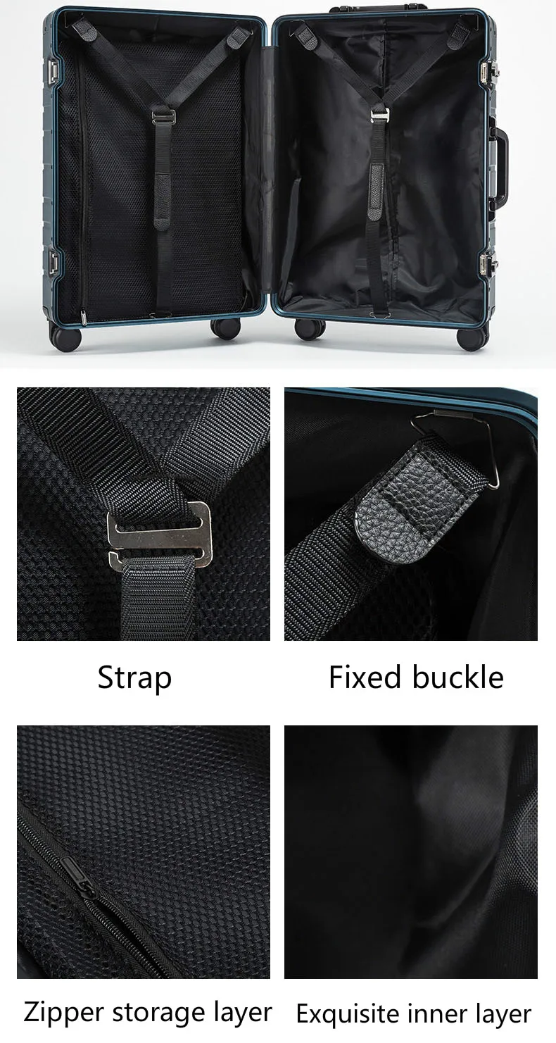 * Aluminum-magnesium alloy housing Strong, pressure - resistant and fall - resistant * Mute universal wheel Shock absorption, noise reduction, smooth * Aluminum alloy pull rod Light, strong and durable