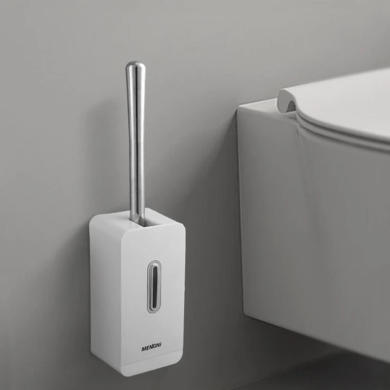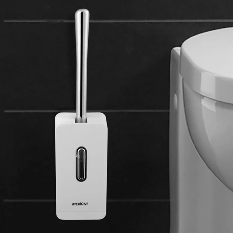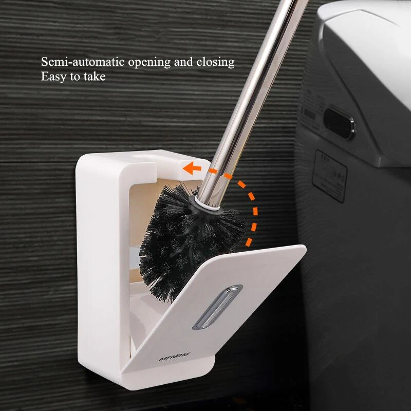 Название продукта Полуавтоматическая щетка для унитаза Размер: 37,5*9*8 см Материал: АБС + нержавеющая сталь Цвет: белый/серый Настенный, экономит место (С двумя головками кистей)