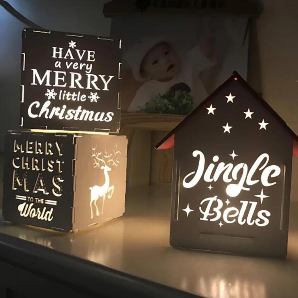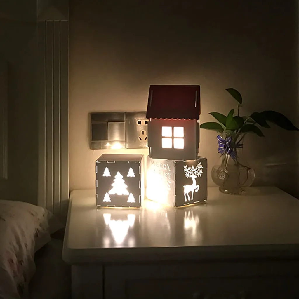 Светодиодный деревянный Небольшой ночник в креативной форме, украшение для рождественской комнаты