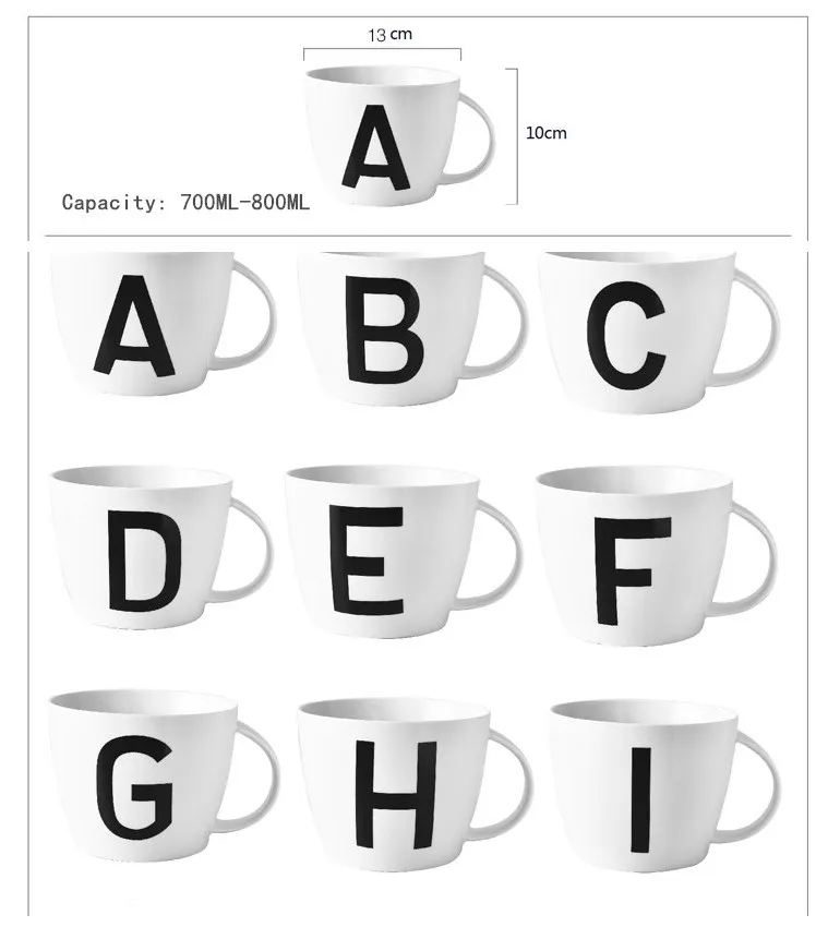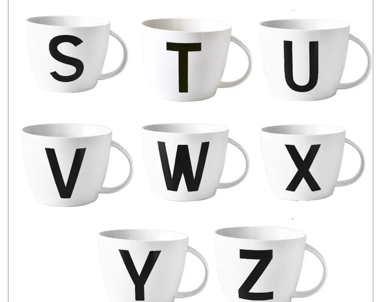 Керамическая кружка большой емкости в европейском стиле с 24 буквами, подходит для завтрака, чашка для молока, овсяных хлопьев, чашки для домашнего чая