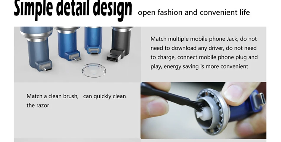 1. Без внутренней батареи 2. Нет необходимости в зарядке 3. Чехол для мобильного телефона для продолжения 4. Мини-размер 5. Сухое/влажное Бритье