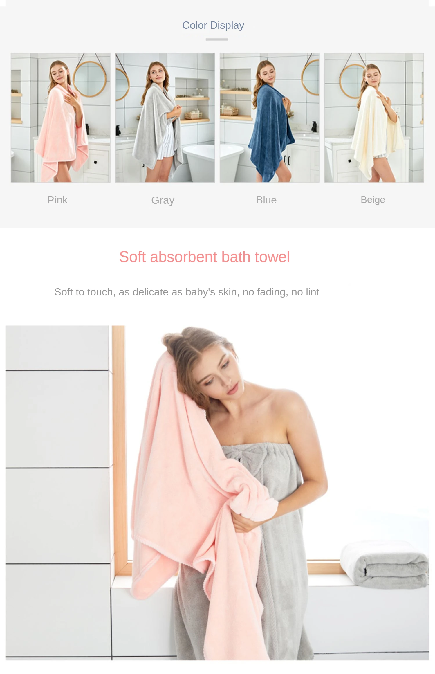 Характеристики: быстрое впитывание воды, быстросохнущая, мягкая и приятная для кожи без выпадения волос, машинная стирка, ручная стирка и легко моется