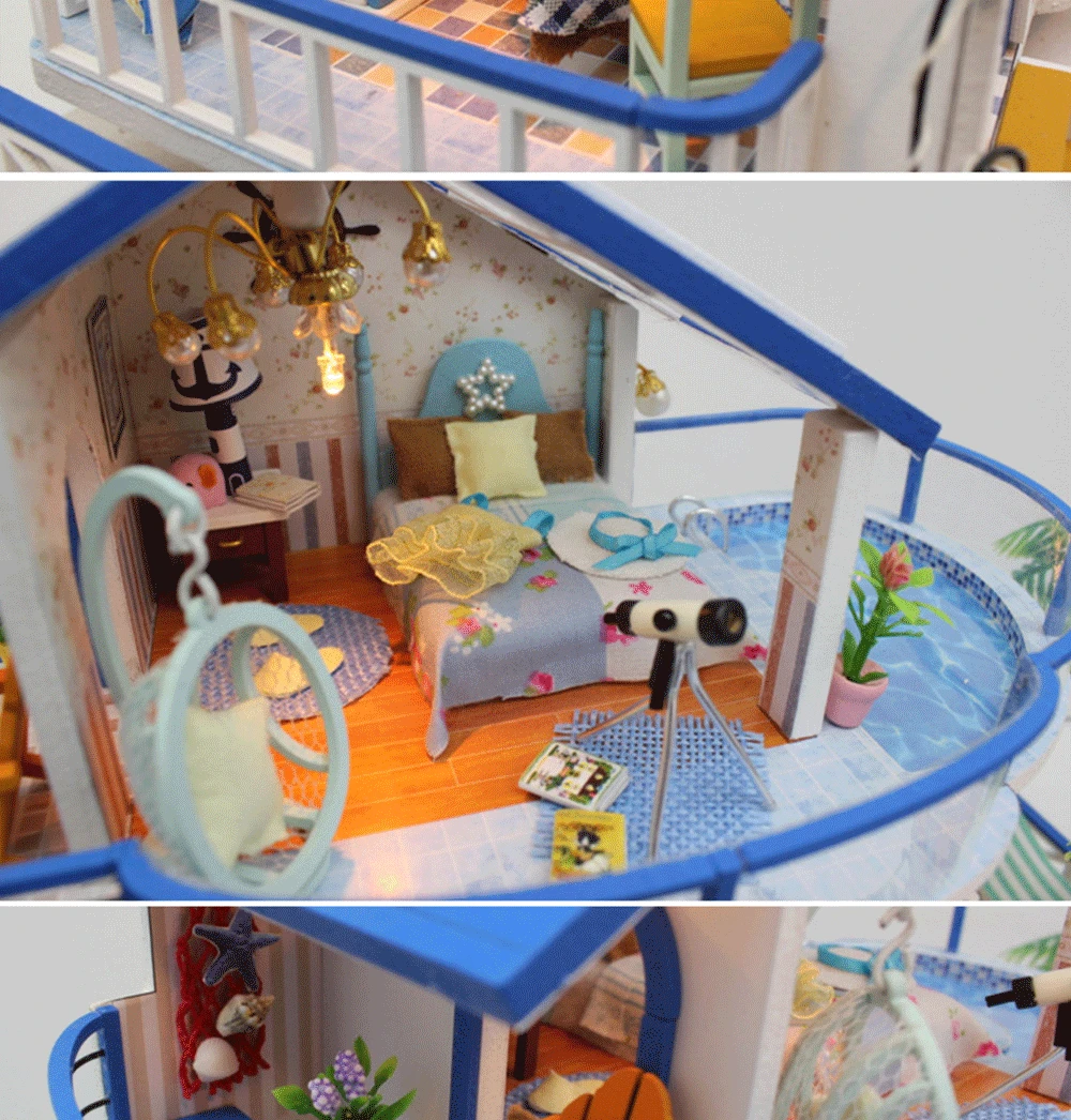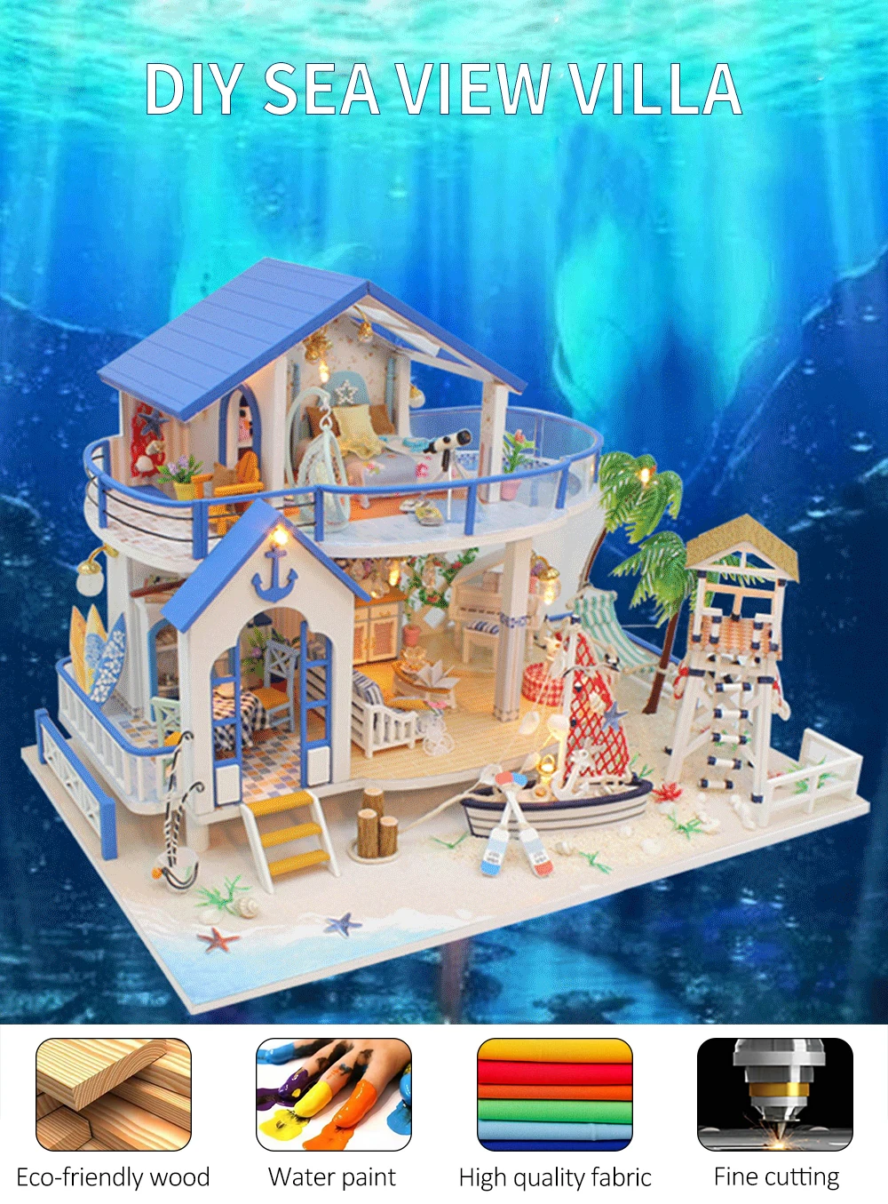 Большой кукольный дом, комплект мебели, деревянный дом для детей, вилла с видом на океан