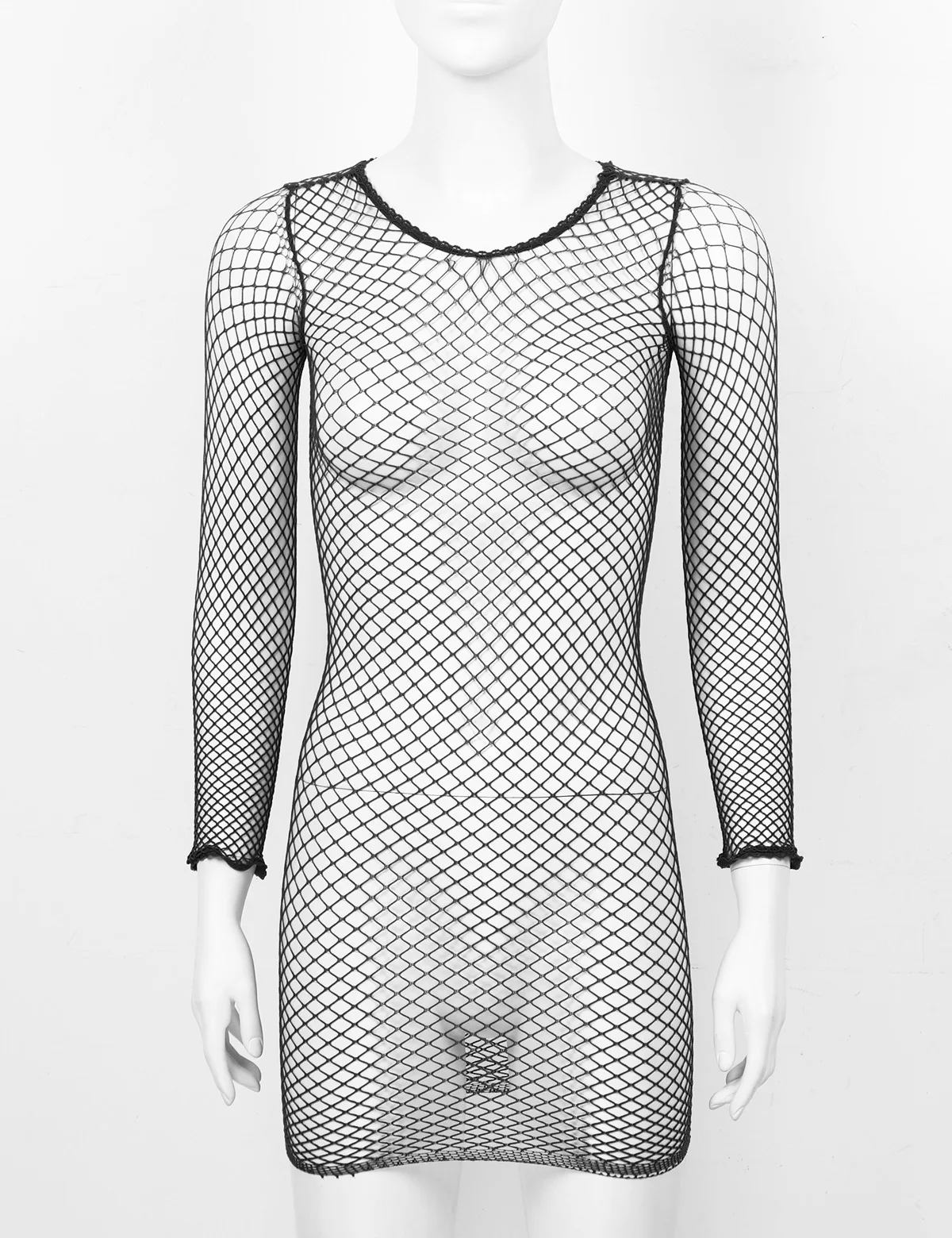 Круглый вырез и длинные рукава, ажурный дизайн, который отлично подчеркивает изгибы вашего тела, плотно прилегает.