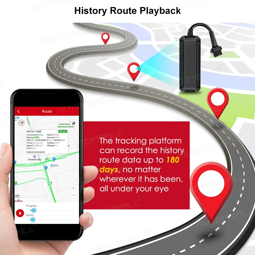 Платформа отслеживания может записывать данные маршрута истории до 180 дней.