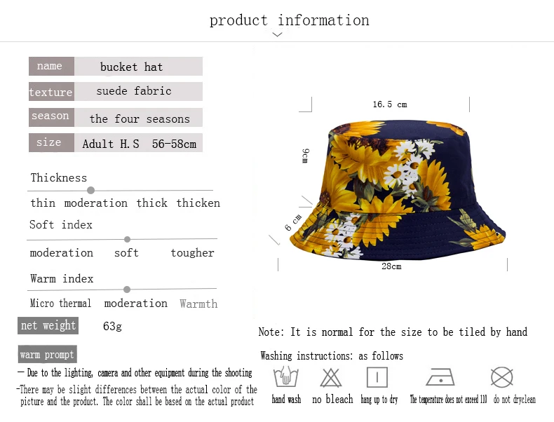 Двухсторонняя Рыбацкая шляпа с подсолнухом, Солнцезащитная шляпа, Корейская мужская и женская шляпа, Панама Вес 62,5 г Цвет 3 Посылка упаковки 20*20*2 см