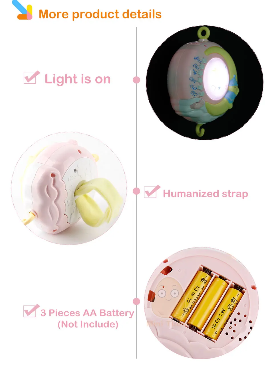 1. Проекция и музыка: портативная кроватка с светильник звезды и изображение 2 Режим проекции. Всего 6 песен, 5 звуков природы и 150 красивых мелодий. Подарите комфортную среду, которая подходит для сна ребенка. 2. Функция синхронизации: Таймер 20/40/60 минут, музыкальная шкатулка будет автоматически закрыта к установленному времени. Функция отключения времени создает идеальную среду для сна для вашего ребенка. 3. Простота в использовании: Легко собирается и крепится к кроватке. С пультом дистанционного управления, он может управлять всеми функциями музыкальной шкатулки.