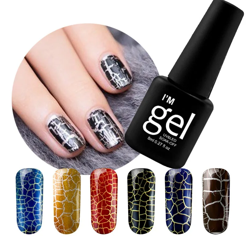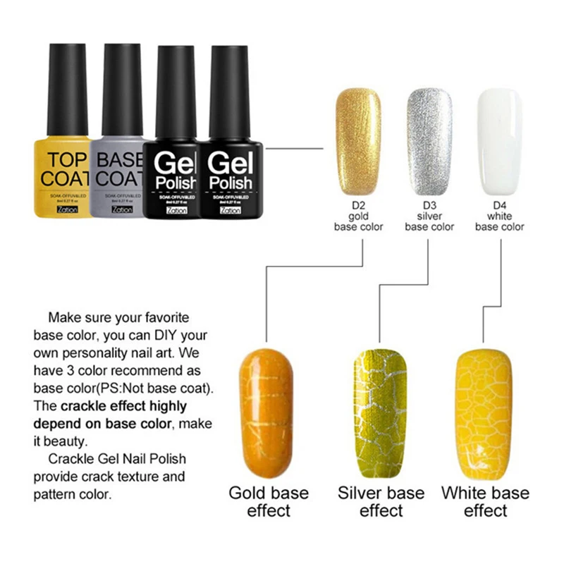 Примечание: Сначала нанесите понравившийся цвет на основе, а затем нанесите треснувший клей для ногтей.