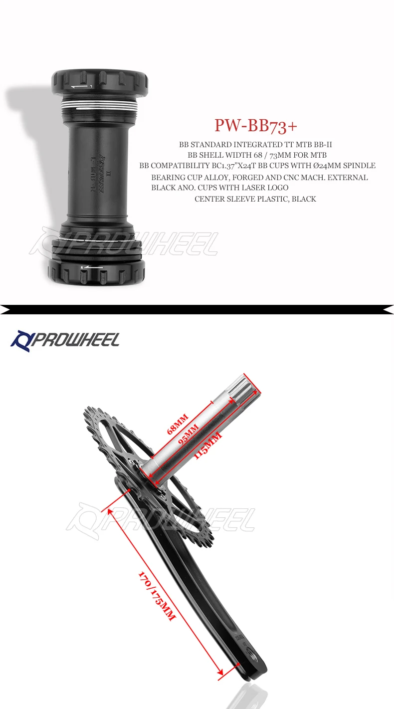 PROWHEEL Mountain Bike Crankset 170/175mm Crank GXP Narrow Wide Sprockets 32T 34T 36T 38T with Bottom Bracket BB MTB Crank set