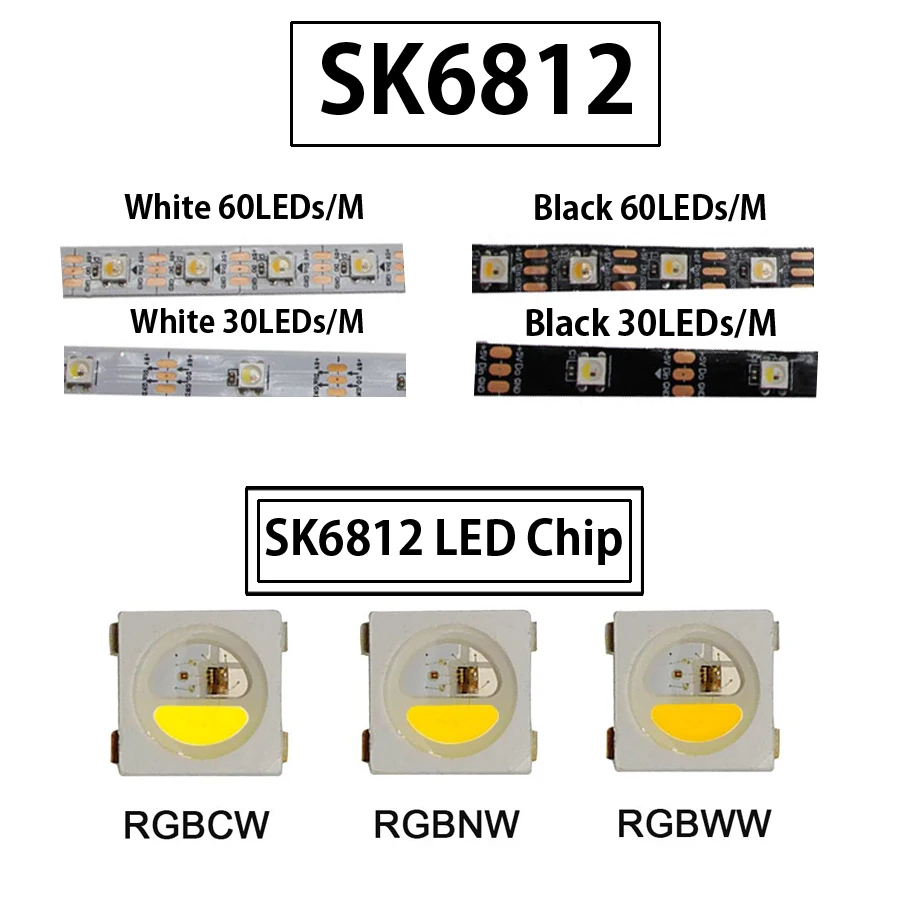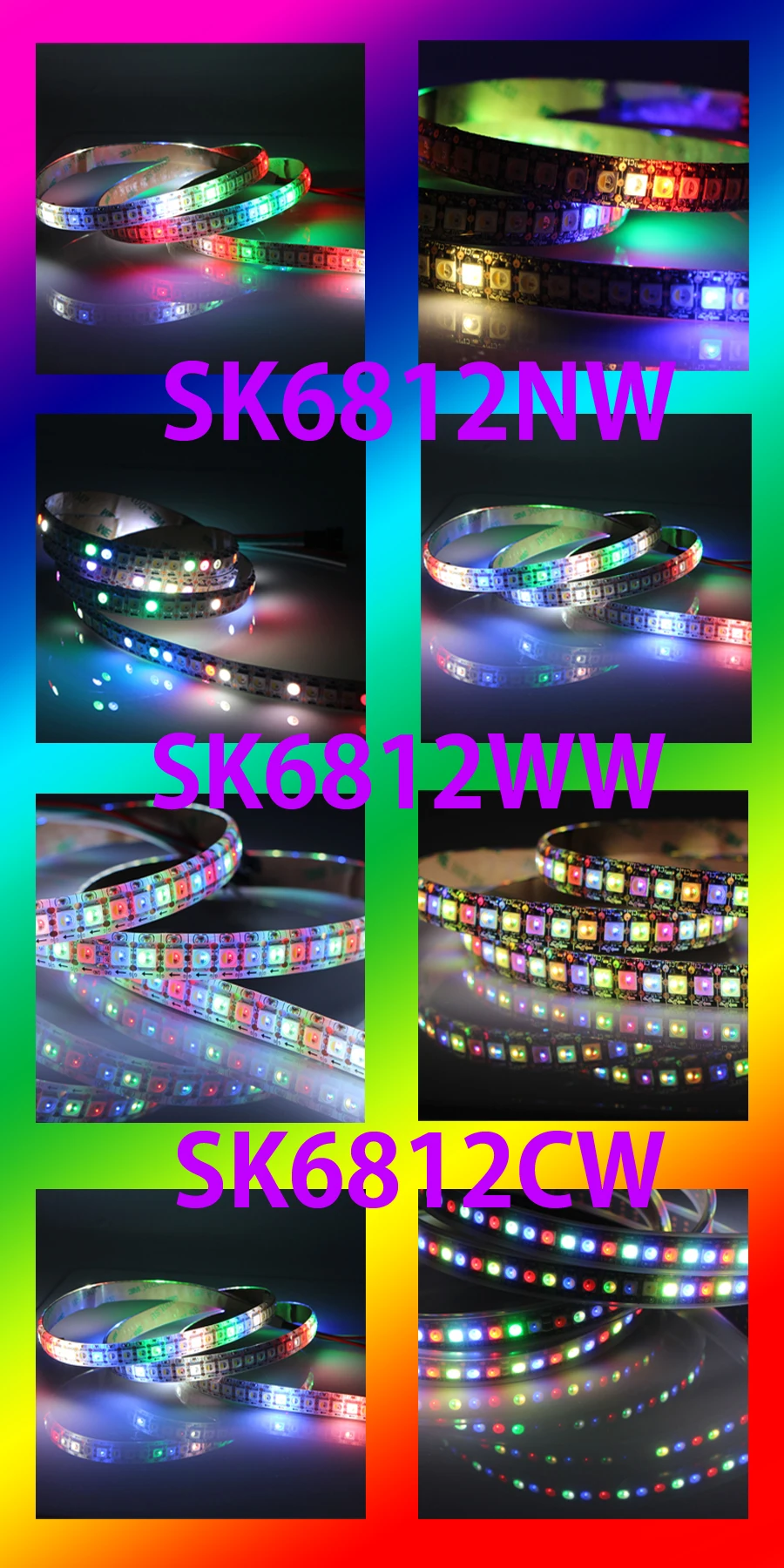 IP30: не водонепроницаемый IP67: водонепроницаемый в силиконовой трубке (RGBCW 6000-6500K ;RGBWW 2700-3000K ; RGBNW 4000-4500K) Длина по вашему выбору Примечание: Цена только Светодиодная лента, не включает блок питания или светодиодный контроллер! SK6812 RGBW должен использовать источник питания DC5V и светодиодный контроллер управления для управления! Каждый 0,5 метр с Паяные соединения, пожалуйста, обратите внимание! Светодиодный источник: 5050SMD RGBW встроенный микросхема SK6812 Напряжение (постоянный ток):5 В Мощность: 144 светодиодов/метр ------- 43,2 Вт/м 60 светодиодов/метр --------- 18 Вт/м 30 светодиодов/метр --------- 9 Вт/м Светодиодный Тип: SMD5050 Тип IC: SK6812 Светодиодный/на метр: 30, 60144 светодиодный s/метр (Каждый светодиодный Светодиодный контроль отдельно) IC/на метр: 30, 60,144IC/метр (1 IC дисков 1 led чип) Пиксели/на метр: 30, 60144 пикселей/метр Серый Класс: 256 Цвет: RGBW (WW 2700-3000K ; CW 6000-6500K;NW 4000-4500K) Цвет печатной платы: белый Класс водонепроницаемости: IP30-----NON-водонепроницаемый IP67 ----- силиконовая трубка IP30,IP67, есть пленкой длиной 3 м клейкая лента на задней стороне. Вы можете легко установить Применение: Подходит для украшения автомобиля и велосипеда, пограничного или контурного освещения Широко используется для украшения дома, отелей, клубов, торговых центров Архитектурное декоративное освещение, изысканное атмосферное освещение Широко применяется при заднем освещении, скрытом освещении, освещении с буквенным каналом Аварийное и безопасное освещение, рекламный знак освещения Декоративные светильники для праздника, события, выставки