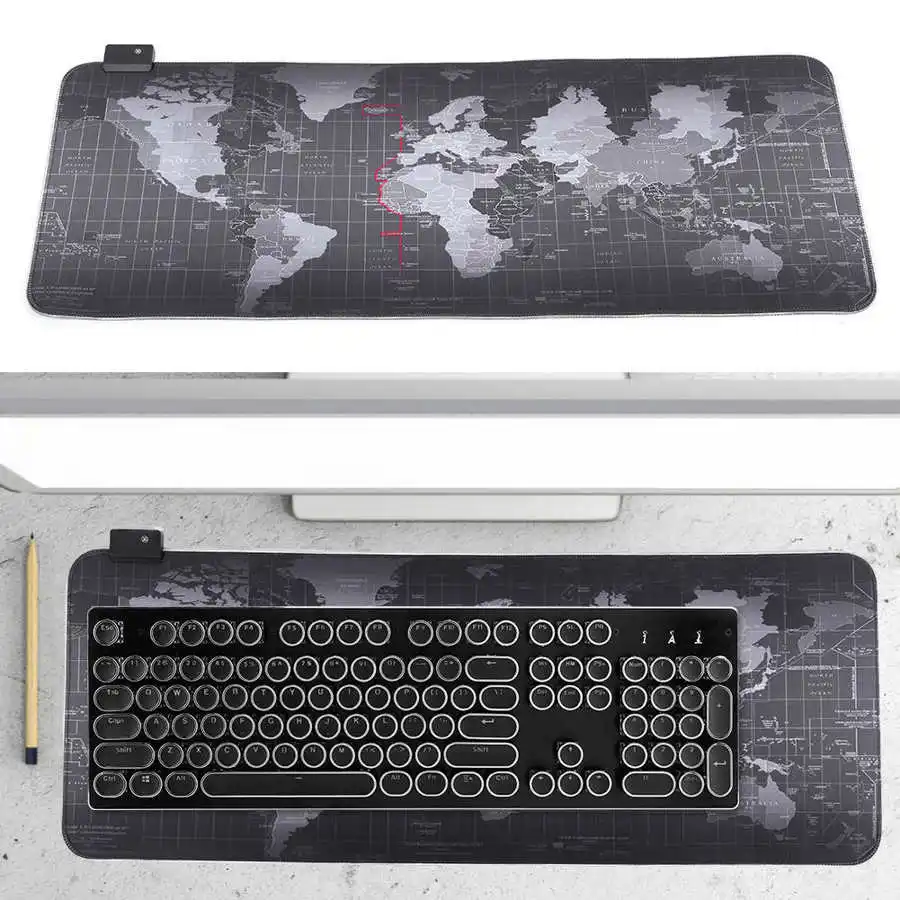 Коврик для мыши RGB, светящийся игровой большой коврик для мыши с картой мира, водонепроницаемая нескользящая резиновая основа 800x300