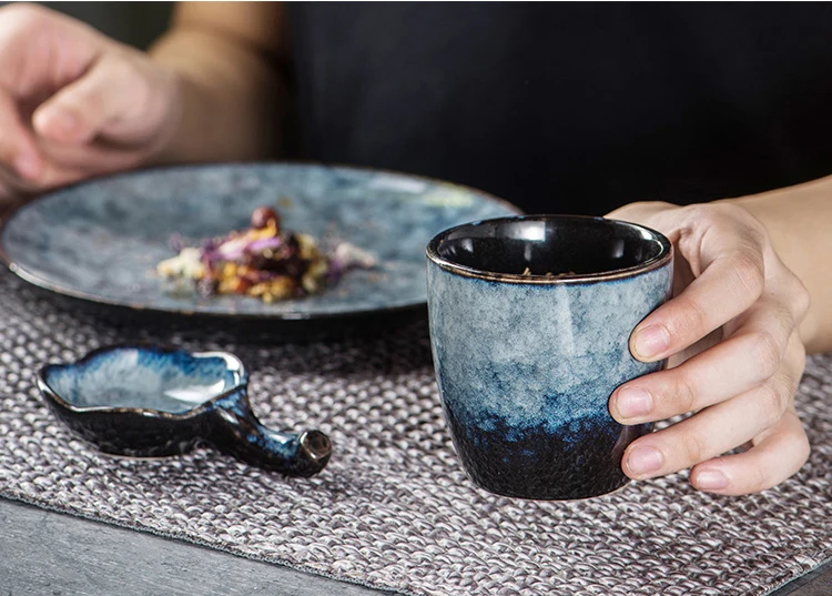Информация о продукте Название: чашка Материал: керамика Емкость: 150 мл Размер: Размер 7 см, высота 6,8 см (как на картинке) Стиль: китайский стиль ретро Процесс производства: Цветная глазурь, высокотемпературный обжиг Тип: чайный сервиз Особенности: произвольная текстура