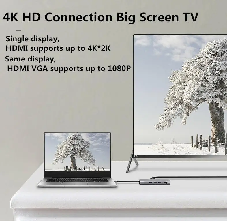 9 в 1 USB Type-c Thunderbolt 3 к HDMI RJ45 USB3.0X4 USB-C PD TF SD слот адаптер: