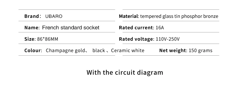 1. Настенная розетка используется для питания мобильных телефонов, цифровых продуктов и других электрических эквивалентов. 2. Этот продукт должен быть установлен профессиональным электриком. 3. Он широко используется во многих местах, таких как: отель, ресторан, дом, общественные места. 4. Материал: панель с гнездом из закаленного роскошного кристального стекла, водонепроницаемый, ПК огнеупорный чехол. 5. Цвет: белый/золотой/черный. 6. Квадратная Модель: 86. 7 、 Вход Напряжение: AC 110-250V 50/60Hz Максимальный ток: 16A. 8. Размер панели: 172x8 6 мм/6,78x3,39 дюйма 9. Упаковка в коробке: 1 шт. + 2 винта. 10 、 розетка с usb док-станция для телефона 5V 2100mA