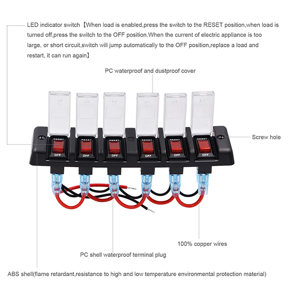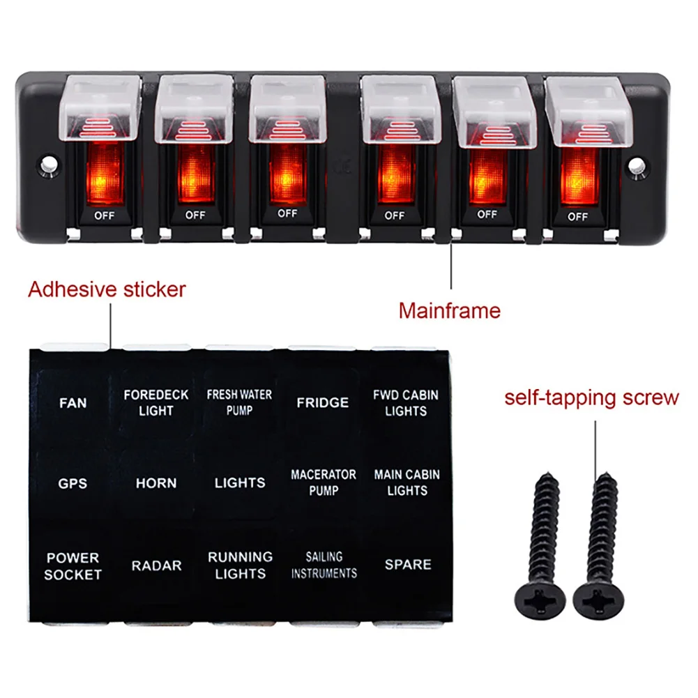 16A красный светодиодный светильник 6 банд морской автомобиль Лодка кулисный переключатель панель Выключатель