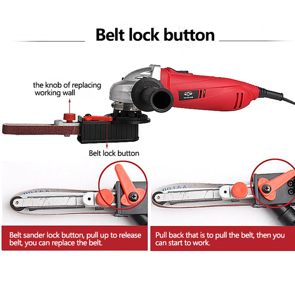 <Простота установки: быстрая и простая установка, другие Запасные инструменты не требуются, быстро преобразует угловую шлифовальную машину в ленточный шлифовальный станок