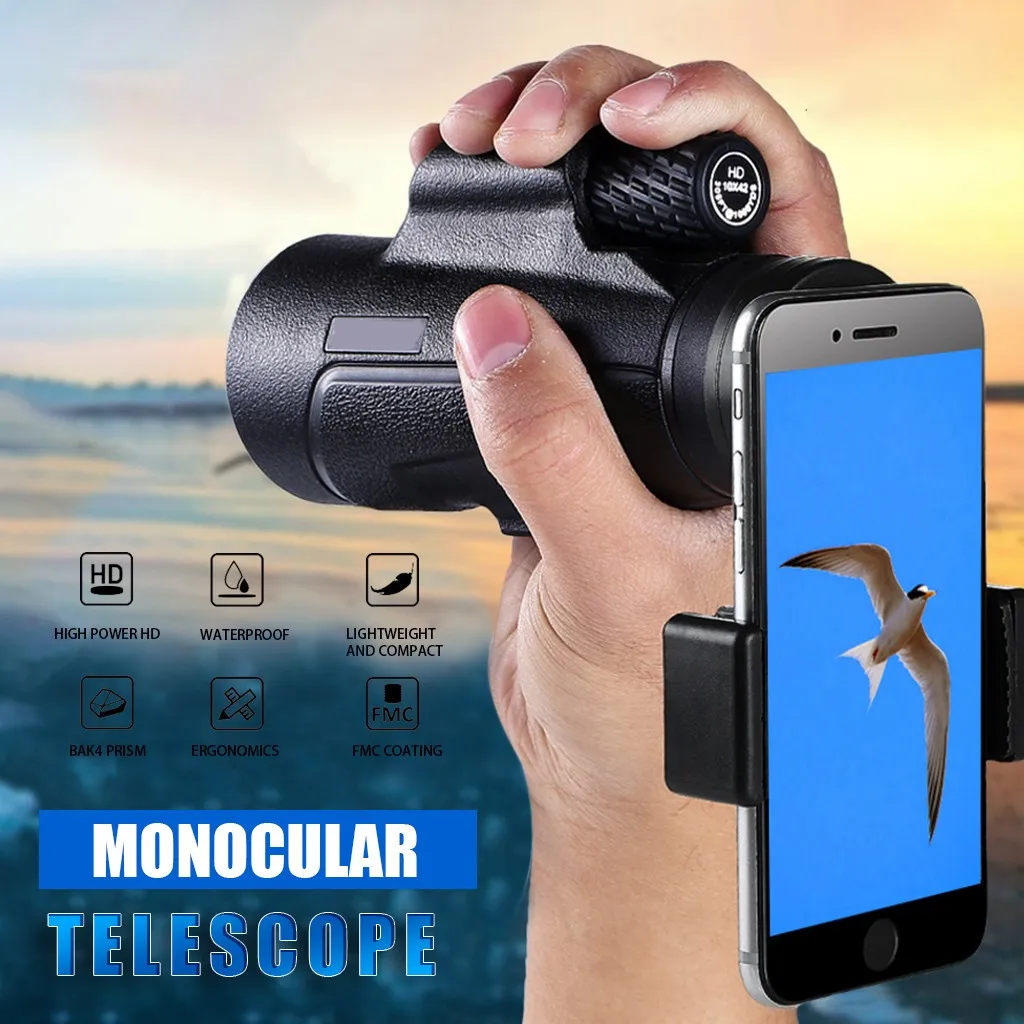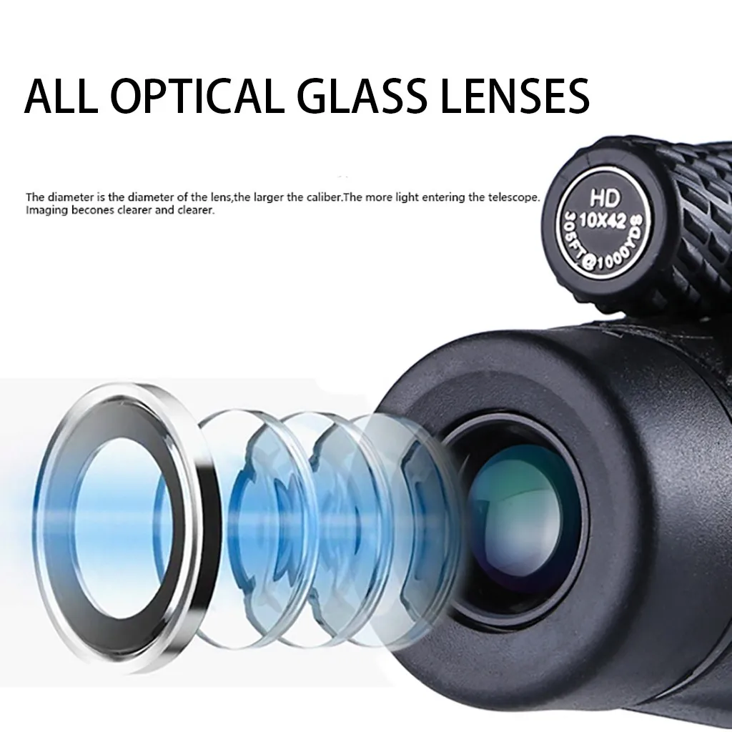 Одноместный Бинокль Мини 10x42HD высокой мощности HD низкий светильник ночного видения