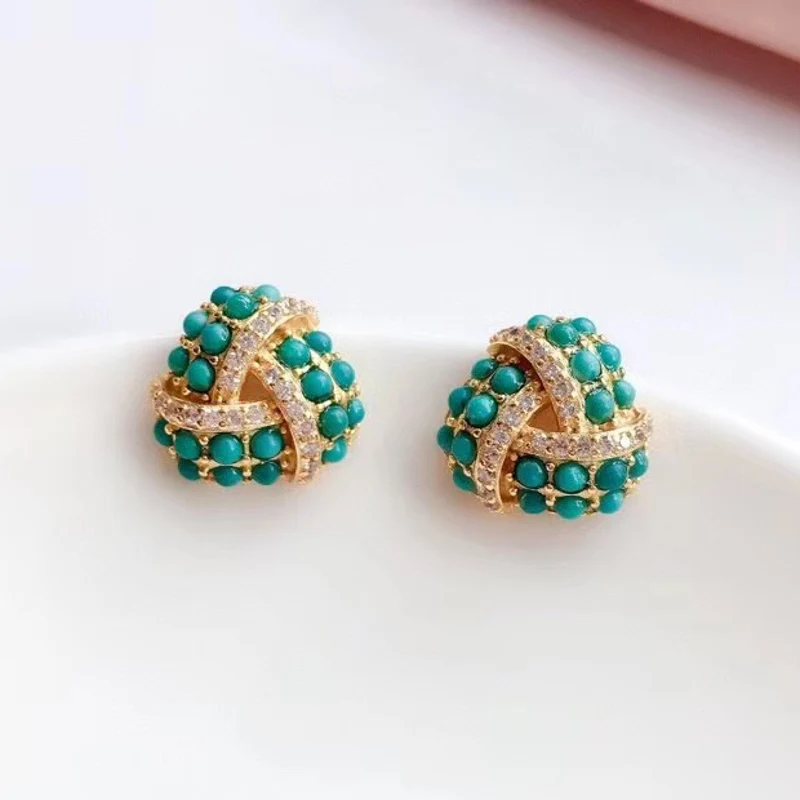 FFGEMS, натуральный бирюзовый 100% Стерлинговое Серебро 925 пробы, калаит, драгоценный камень, серьги-гвоздики, ювелирные украшения для женщин, свадебный подарок 2020 Основной камень: натуральная бирюза В комплекте футляр