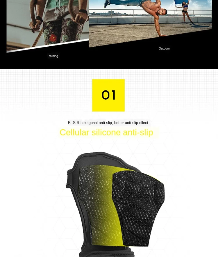 Подробная информация о продукте: Состояние: Новый в оригинальной упаковке Цвет: черный Размер: M,L,XL Материал: ткань для дайвинга, силикон Тип перчаток: перчатки для защиты ладони Тип спорта: тренажерный зал, фитнес, Велоспорт, Спорт на открытом воздухе... Пол: Man/Для женщин Вес: 75 г Посылка включает в себя: 1 пара перчаток для защиты ладони
