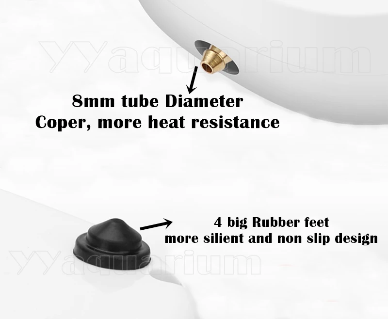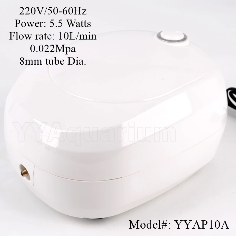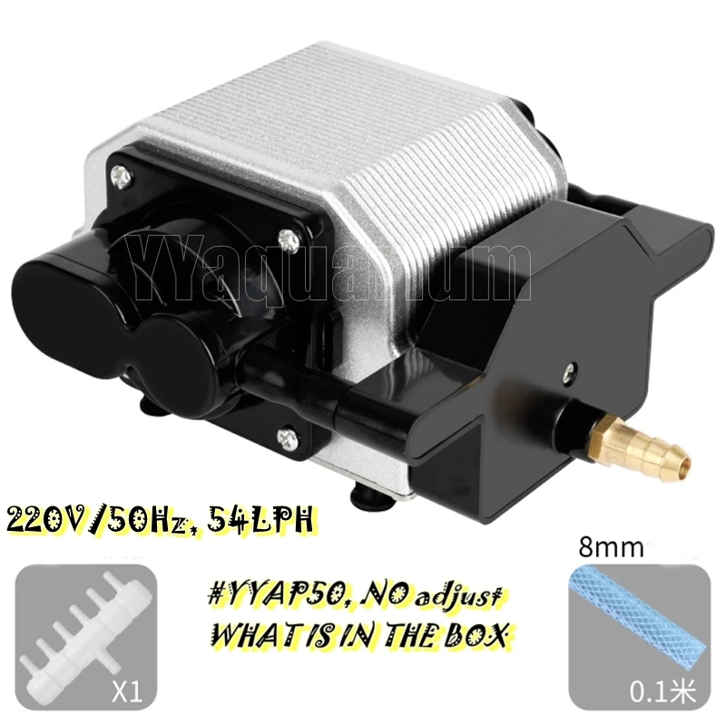 12л, 30л, 54л/мин большой объем сильный расход воздуха, но с небольшим размеромАлюминиевый сплав и тонкий Купер, отлично подходит для излученияСупер тишина только в пределах 40 дБНовая технология Maglev двойная воздушная камераДлительный срок службы4 шт. автомобильный амортизаторСупер отлично подходит для бассейна и большого аквариумаСпецификация аквариумного воздушного насоса для модели # YYAP30AМаксимальная выходная мощность потока: 1800 л/ч, 30 л в минутуДавление: больше или равно 0,03 МПаНапряжение: 220 В/50 ГцМощность: 16 ВтВес: 1,5 кгРазмер приблизительно: 13,5x13x7 смДиаметр выхода воздуха: 10 ммДлина провода: около одного метраНовая модель # YYAP50A аквариумный воздушный насос Спецификация:Макс.Расход потокаВыход: 3240 л/ч, 54л в минутуДавление: больше или равно 0,03 МПаНапряжение: 220-240V /50/60HzМощность: 25 ВтШум: <50 дБ