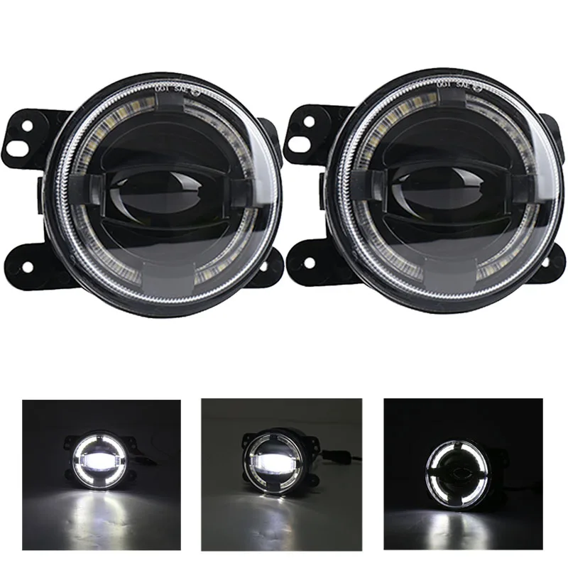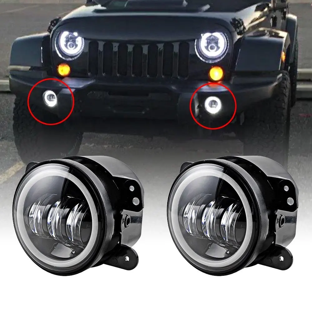 4 дюйма светодиодный туман светильник с Halo Кольцо для Jeep Wrangler JK светодиодный Противотуманные огни лампы Авто LEN проектор головной светильник вождения по бездорожью лампы для Jeep Cherokee