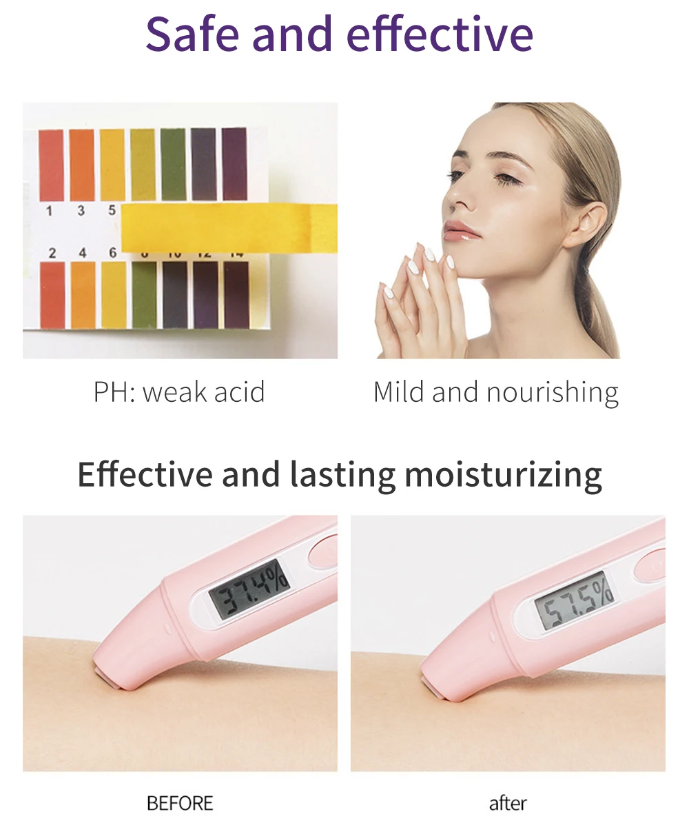 ▶Микромолекулярная Гиалуроновая кислота может Драгировать каналы кожи для увлажнения, чтобы достаточно впитать другие питательные ингредиенты и достичь оптимальных эффектов.
