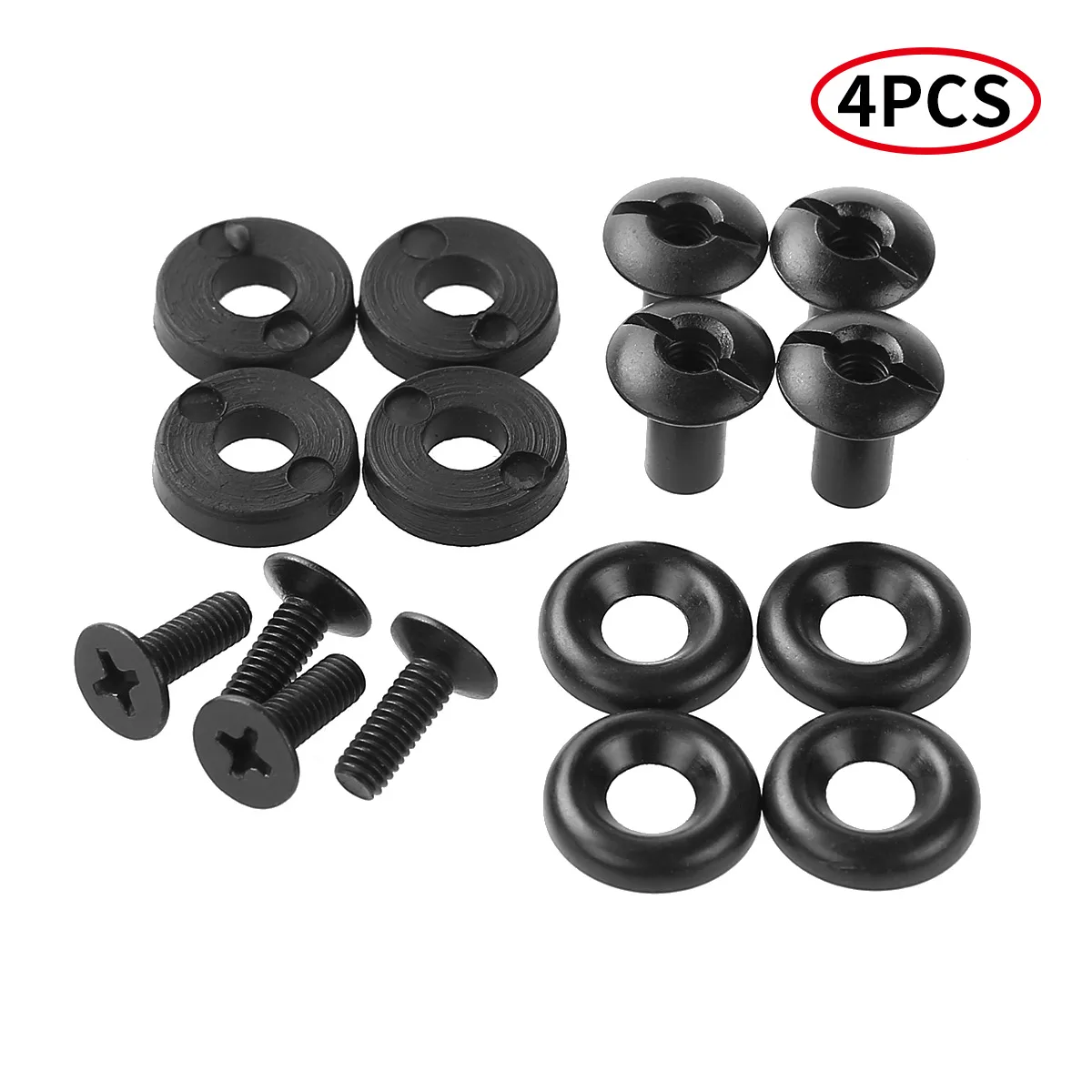 Each set comes with 4pcs posts, 4pcs phillips screws, 4pcs finish washers and 4pcs bushings.