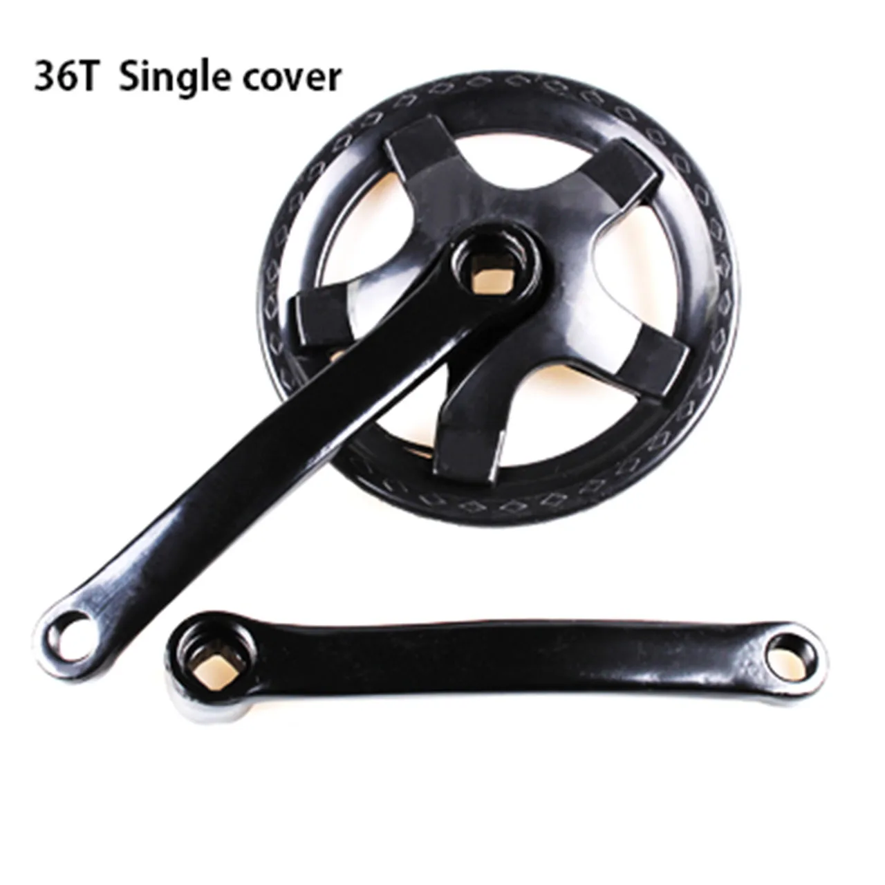 Односкоростное цепное кольцо Размеры: 32/36/40/46/48T Материал: стальной коленчатый набор, алюминиевый сплав, железная рукоятка Цвет: серебристый, черный Тонкая работа,