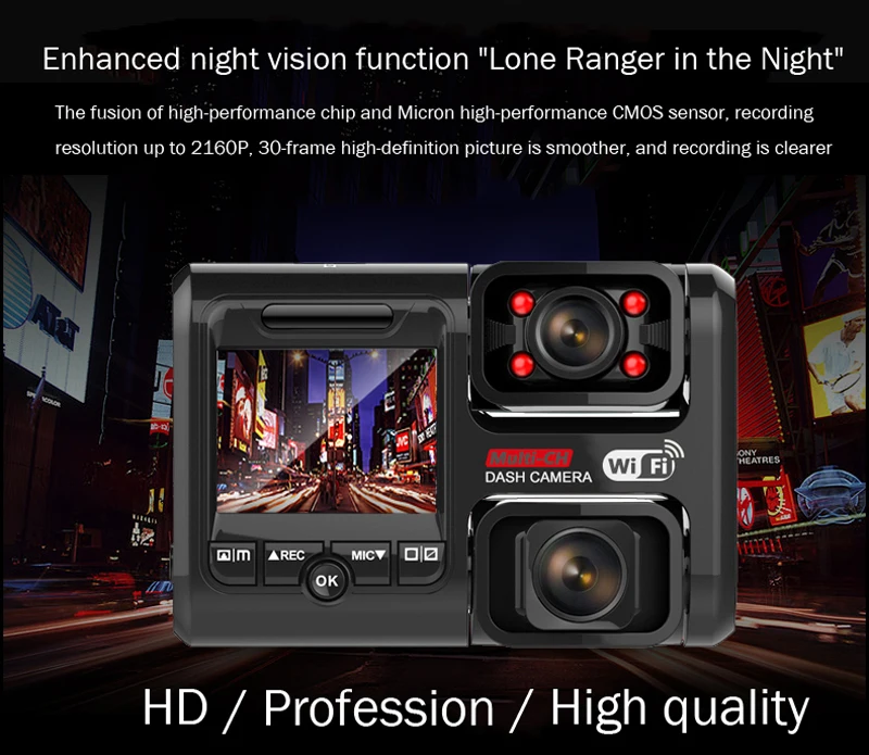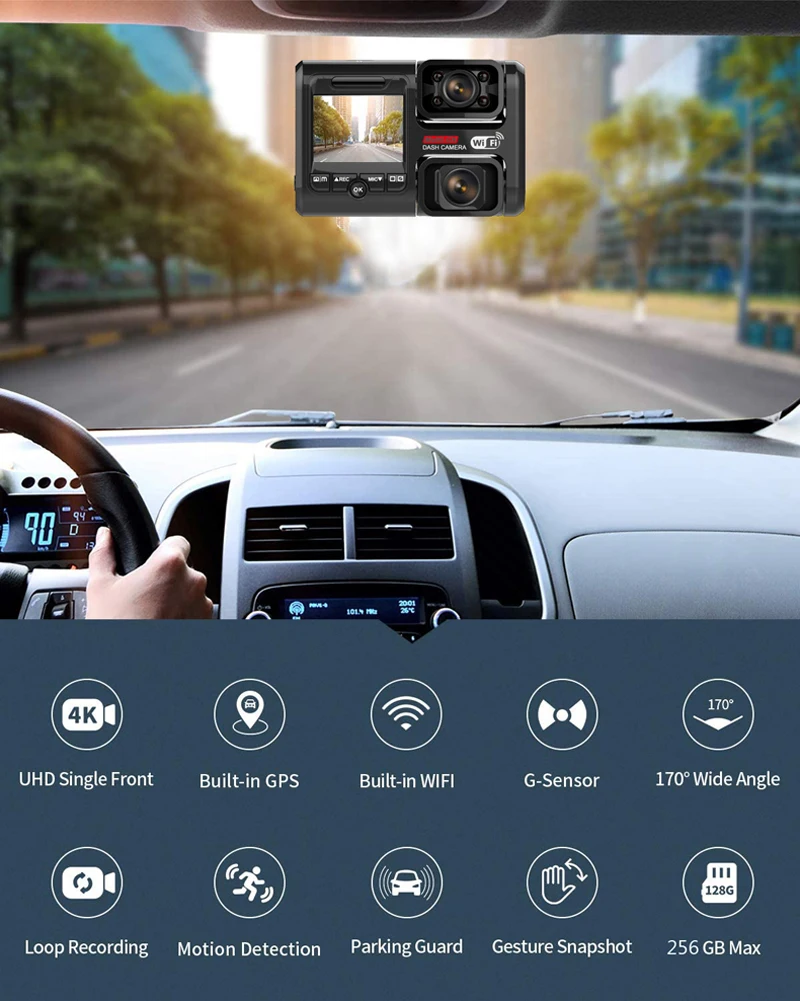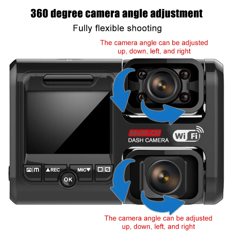 2160P DVR видеорегистратор светодиодный дисплей с поворотом на 360 ° двойной объектив угол обзора 2x170 ° TF 256G ночное видение GPS WIFI автомобильный видеорегистратор
