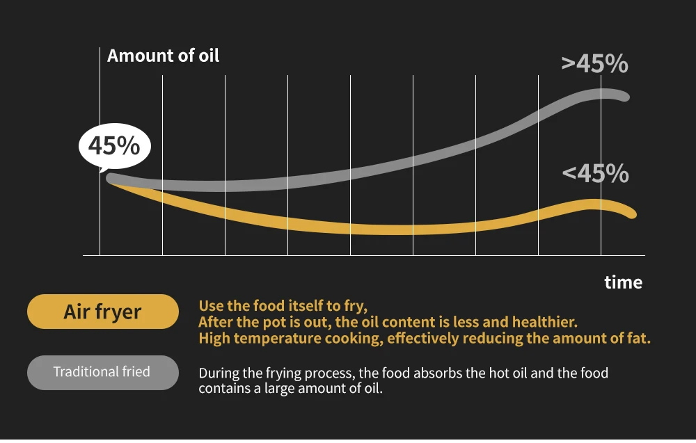 Это лучший подарок для людей, страдающих сердечными заболеваниями, диабетом и ожирением. Эта воздушная фритюрница не нуждается в масле во время приготовления, она имеет на 85% меньше жира, чем традиционная фритюрница, но сохраняет еду вкусной, как глубокая Жарка.