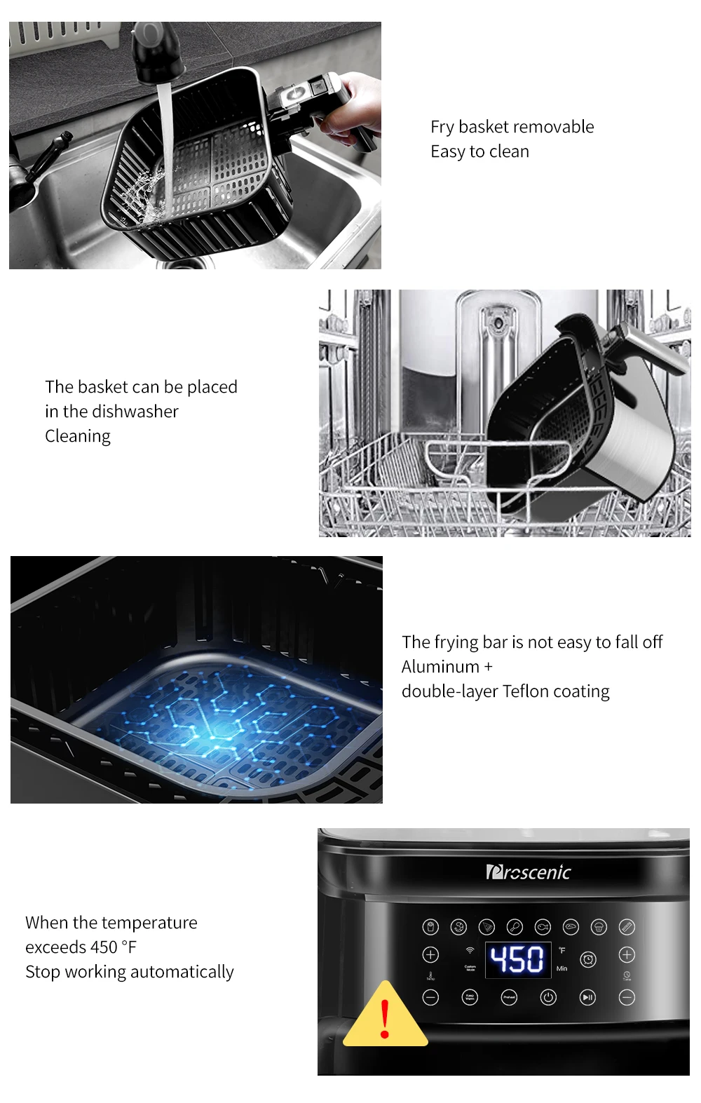 Разработано с тремя комбинированными функциями-Расписание + меню + сохраняет тепло, вы можете выбрать любой, или два, или три из них, все зависит от ваших потребностей. Это уникальная функция proscenic Air fryer, которой еще нет у других брендов.