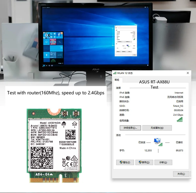 Модель: AX201NGW Двухдиапазонный: 2,4 ГГц/5 ГГц (160 МГц) Скорость до 2,4 Гбит/с (роутер должен на 160Mhz,802.11ax); Скорость 2,4 Гбит/с в диапазоне 5 ГГц (160 МГц) и около 574 МБ/с. с использованием диапазона 2,4 ГГц (802.11ax в обоих). С Bluetooth 5,0, поддержка MU-MIMO Интерфейс: M.2,CNVI, 22*30 мм Длина антенны 6 дБи: 19,5 см IPEX MHF4 U.FL Длина: 20 см Поддержка сети: 802.11b, 802,11g,802.11n,802.11ac,802.11ax Разъем: такой же, как на изображении Гибкая антенна WiFi