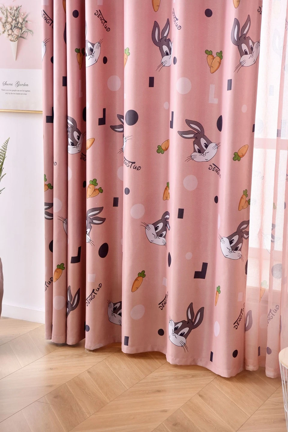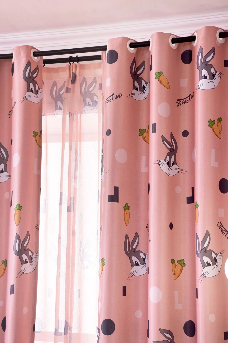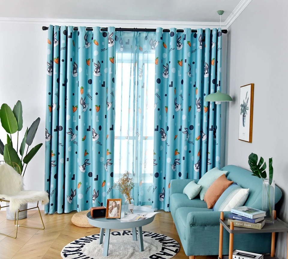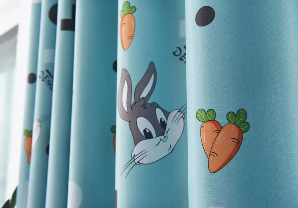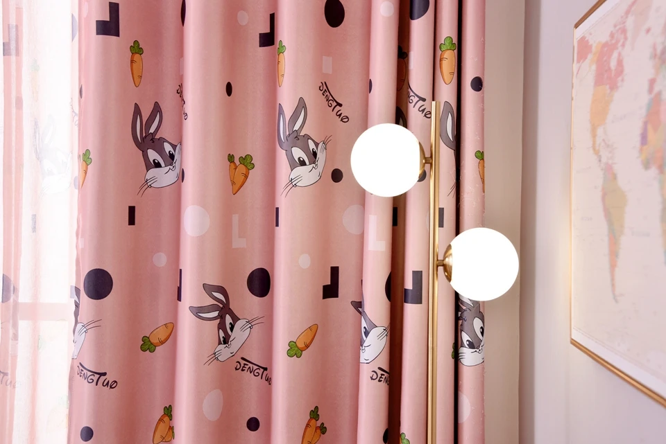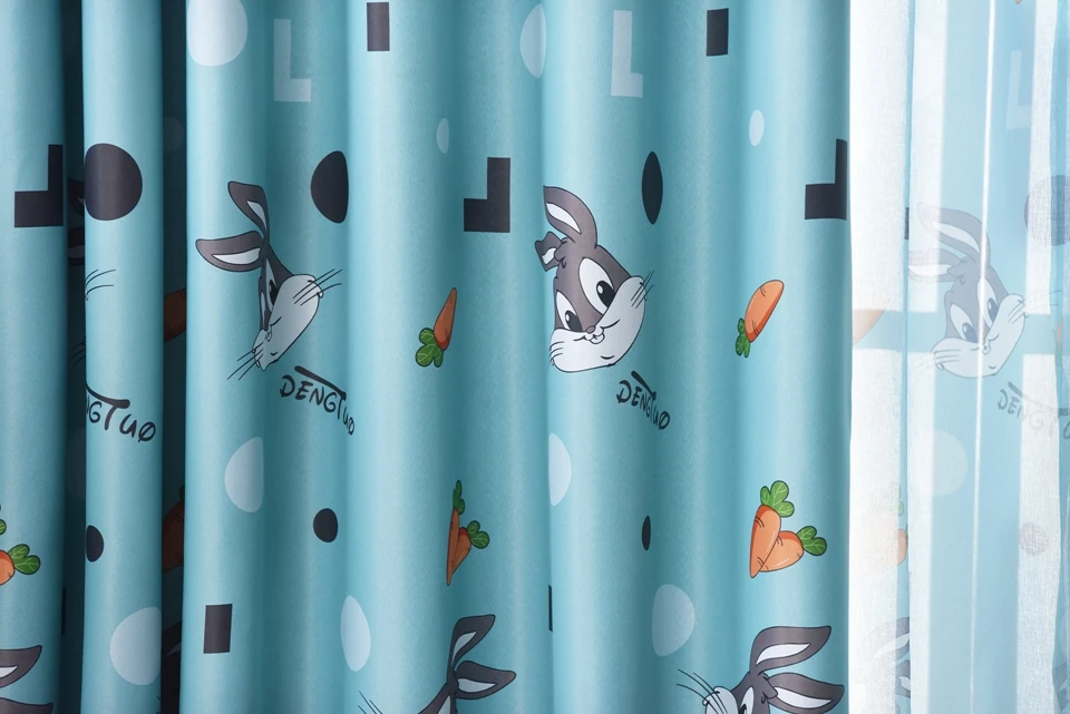 Затемненные шторы с мультяшным кроликом для детей, девочек и мальчиков, занавески для спальни, милые прозрачные шторы из вуали для гостиной, Cortinas