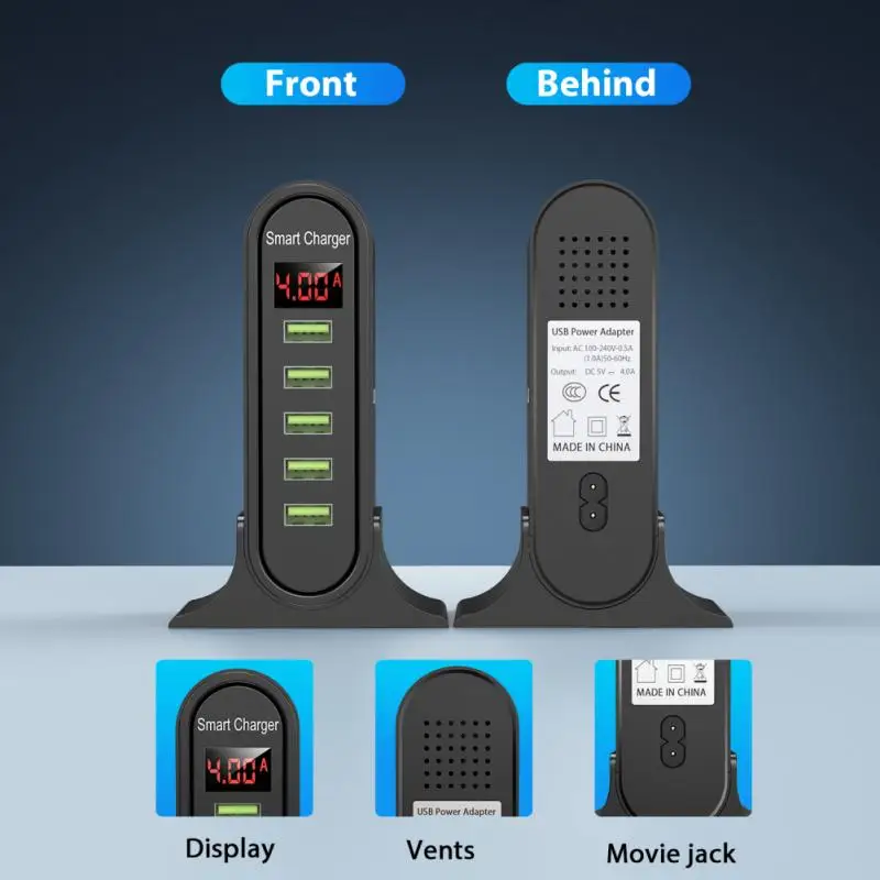 Многоusb-зарядка: интеллектуальное распределение тока (максимум 4A)