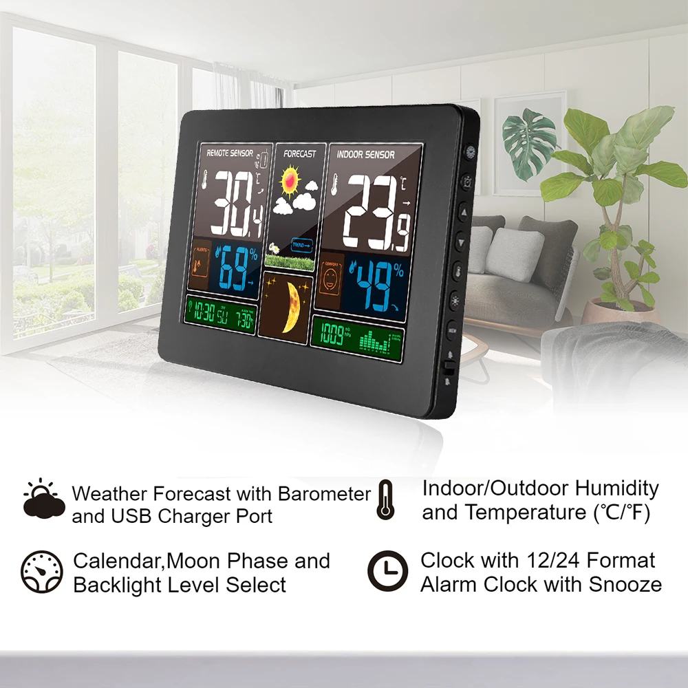 [Поддерживает до 3 датчиков] Эта Погодная станция позволяет 3 беспроводных датчика работать одновременно. Вы можете купить еще два датчика для контроля температуры в разных местах.