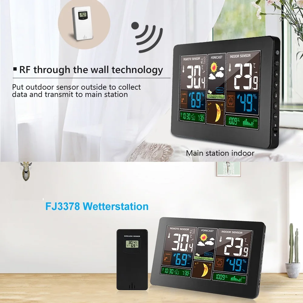[Уличное/внутреннее использование] возможность контролировать температуру в помещении и на улице, влажность одновременно. Знайте внешнюю погоду, просто взглянув на устройство.
